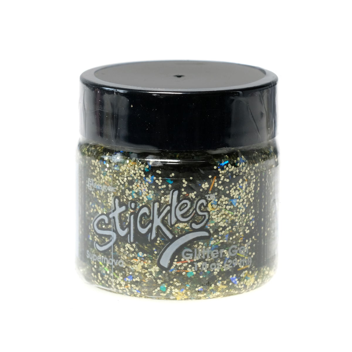 Stickles Glitter Gels are easily spreadable and work great applied through a stencil or directly to surface. Assorted sizes and shapes of glitters make crafts, mixed media, and more truly sparkle! Stickles Glitter Gels add just the right amount of twinkle to everything from cards to mixed media projects. Available in 1 fl. oz. jars.