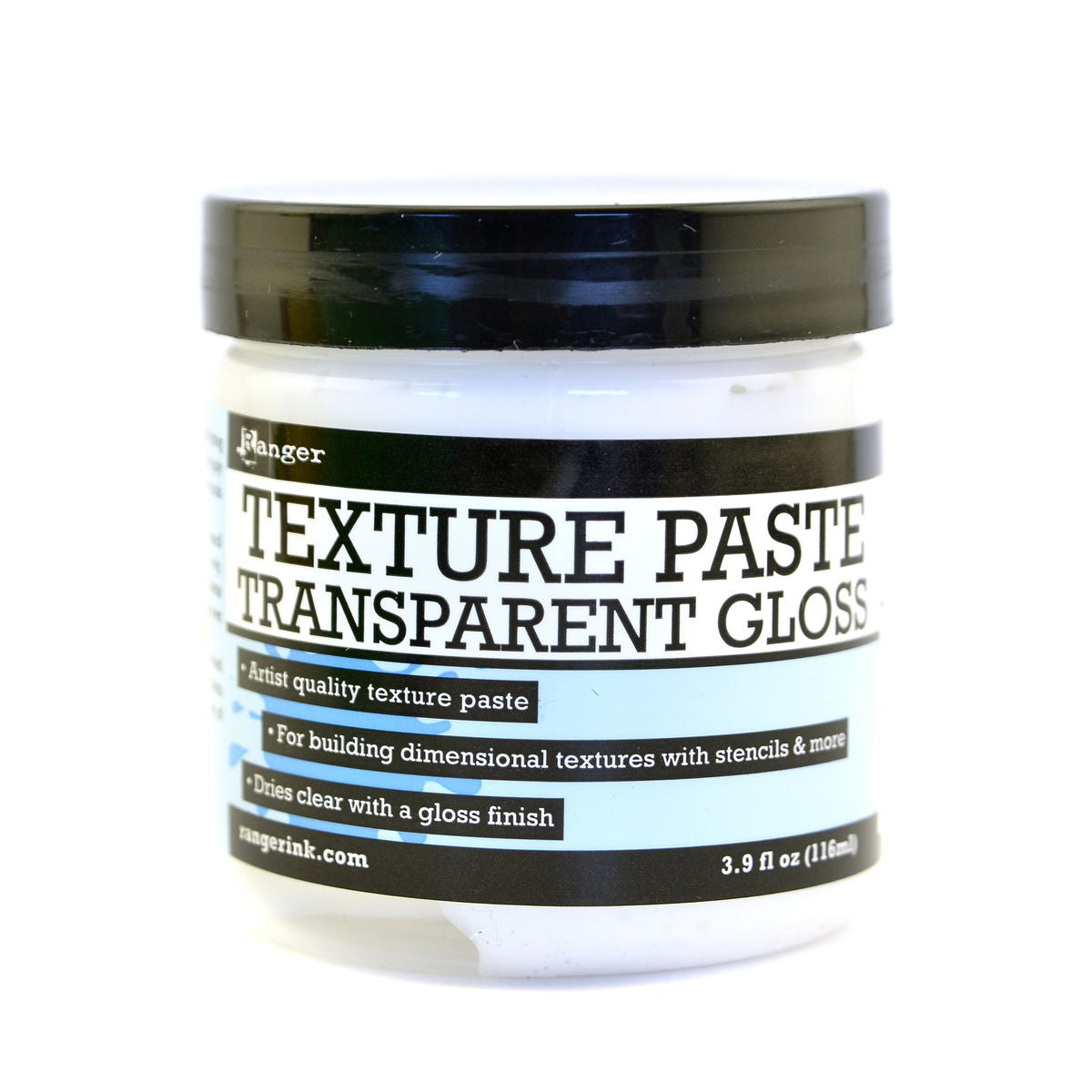 Ranger s artist quality texture paste is ideal for adding dimensional layers onto a variety of surfaces. Apply paste to surfaces using a palette knife, use with stencils for defined shapes, or create textures and patterns using texture tools. Customize the paste by inking or painting directly over the dry paste, or by mixing in acrylic paints, re-inkers and other texturizing elements. The wide mouth jar opening is ideal for quick, easy access and return of unused product to the jar. Available in 4 oz. jars in five different finishes and a 1 oz. jar assorted pack of Opaque Matte, Transparent Matte and Transparent Gloss.