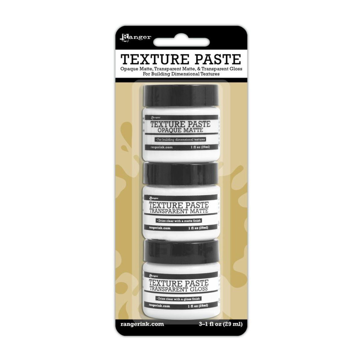 Wide-mouth 4-ounce jars provide easy access for loading tools and returning unused paste. Five finish options, including opaque matte, transparent matte, and transparent gloss, offer different visual effects for layering techniques. A 1-ounce assorted pack lets you test finishes before committing to full jars.