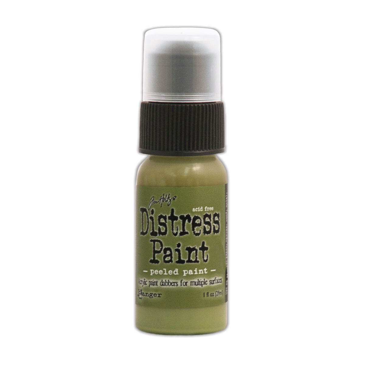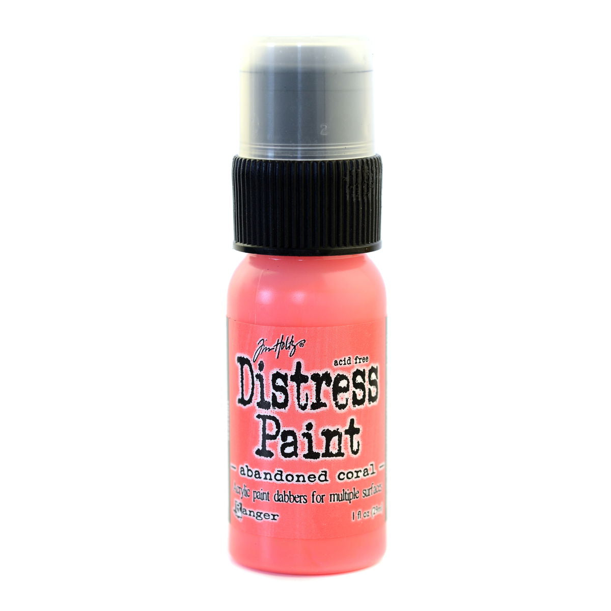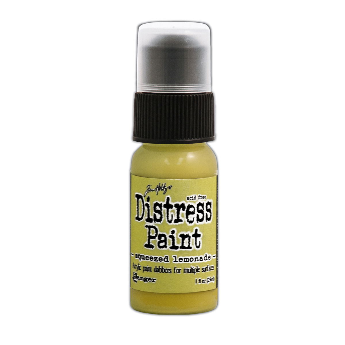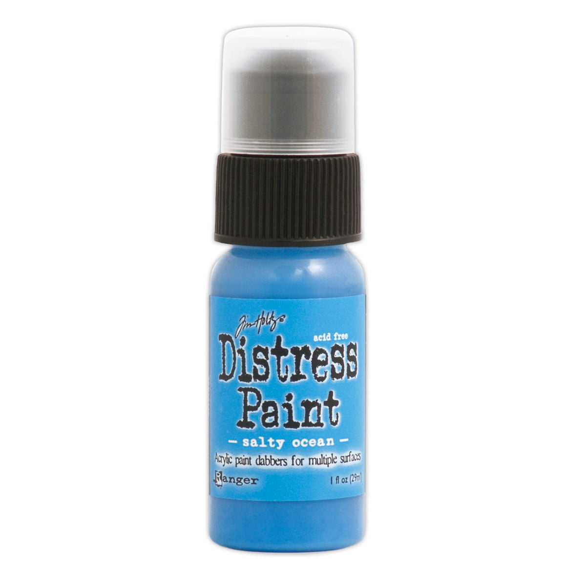 Distress Paints are very fluid water-based acrylic paints for multiple surfaces and are perfect for a wide variety of artistic techniques. Use with stamps, paper, wood, metal, glass, plastic and more for a timeless matte finish on craft projects. These 1 oz. bottles will be transitioning from a dabber top to a flip-top applicator.