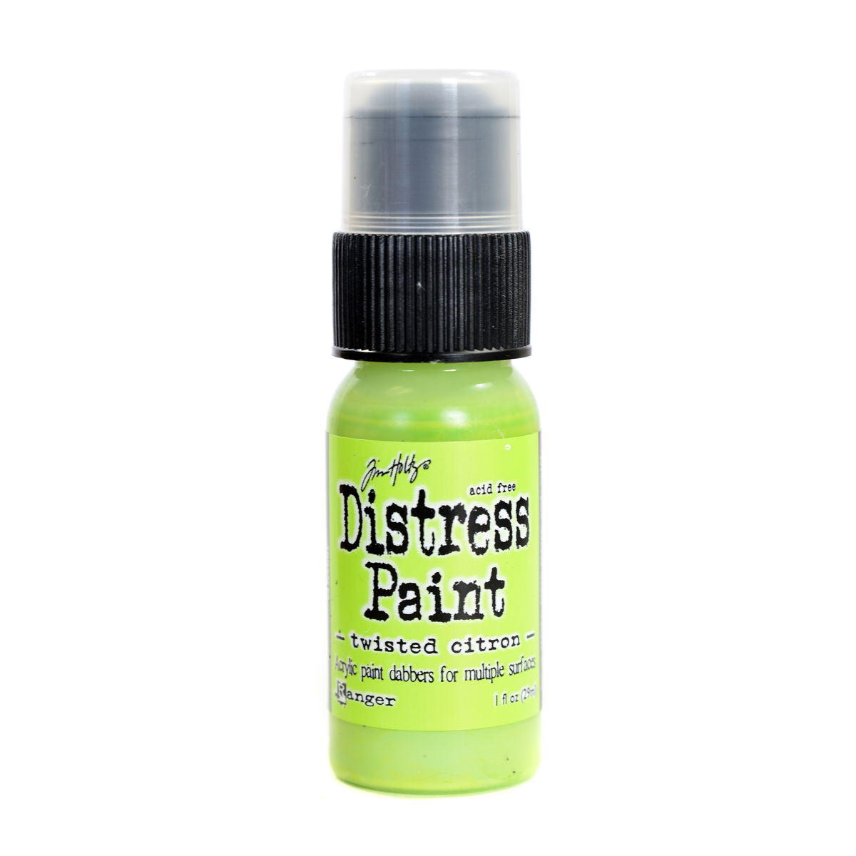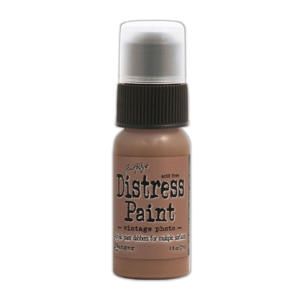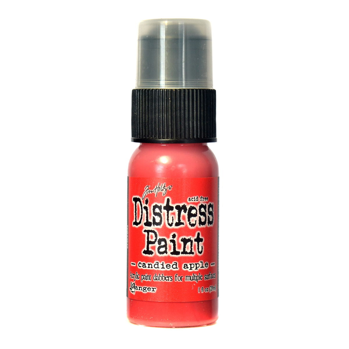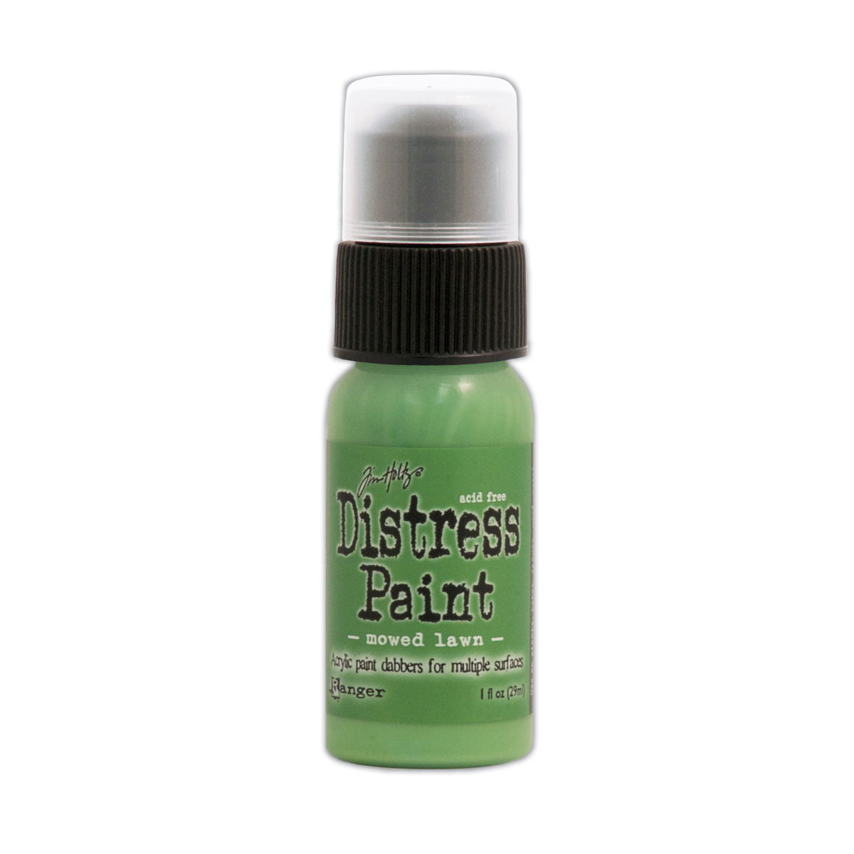 Distress Paints are very fluid water-based acrylic paints for multiple surfaces and are perfect for a wide variety of artistic techniques. Use with stamps, paper, wood, metal, glass, plastic and more for a timeless matte finish on craft projects. These 1 oz. bottles will be transitioning from a dabber top to a flip-top applicator.