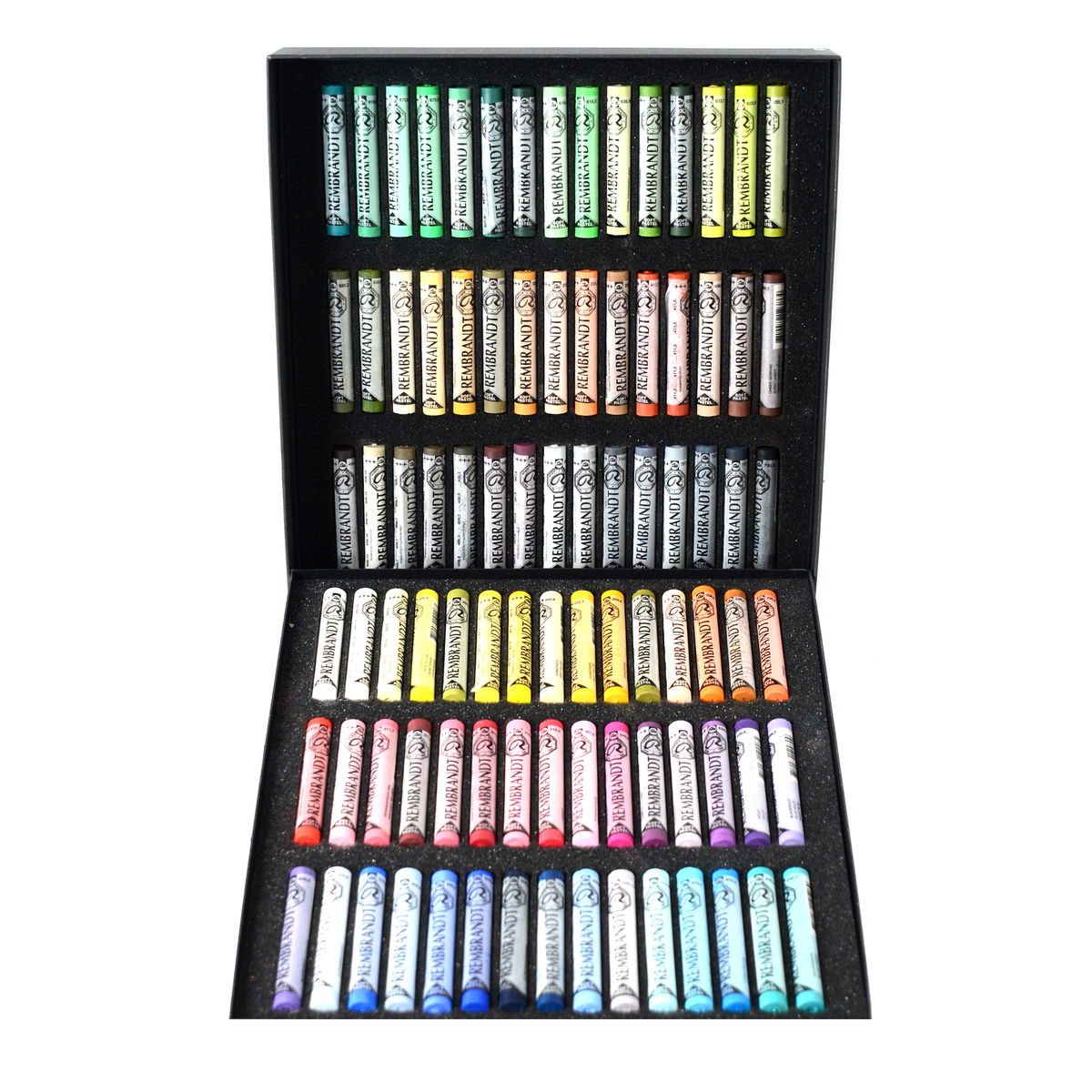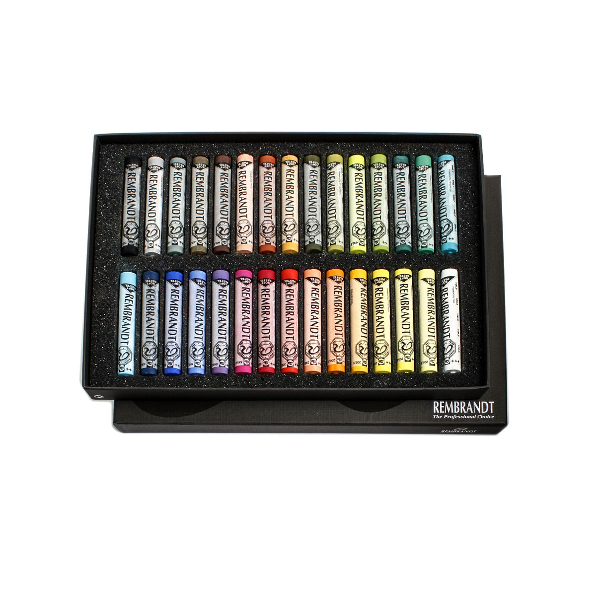 Rembrandt Pastels are made from the best quality, finely ground pure pigments in an extra-fine Kaolin clay binder. The result is a velvety smooth softness in every color. Each rich color is thoroughly blended and uniform, end to end. Contain no hard bits or sharp edges which could cause shiny spots or scratches during application. Rembrandt Pastels are hand-checked throughout production to ensure artists the consistency in texture, color and working qualities that they've come to depend on. Each round full-sized stick has a transparent label imprinted with color name and number, number suffix indicating whether it is a pure tone (.5), a shade (.3), or a tint (.7, .8, .9), and lightfastness rating. Light fastness is especially important when using pastels, since they're practically pure pigment and very susceptible to light. About 70% of the Rembrandt Pastel line has the highest possible degree of lightfastness. Rembrandt Pastel Sets come in cardboard boxed sets with molded protective foam inserts.