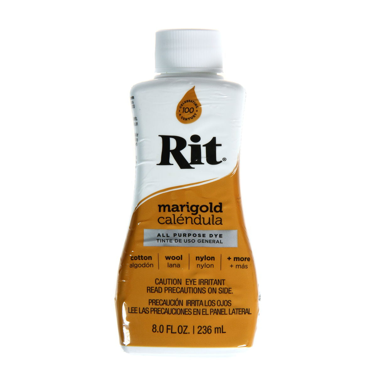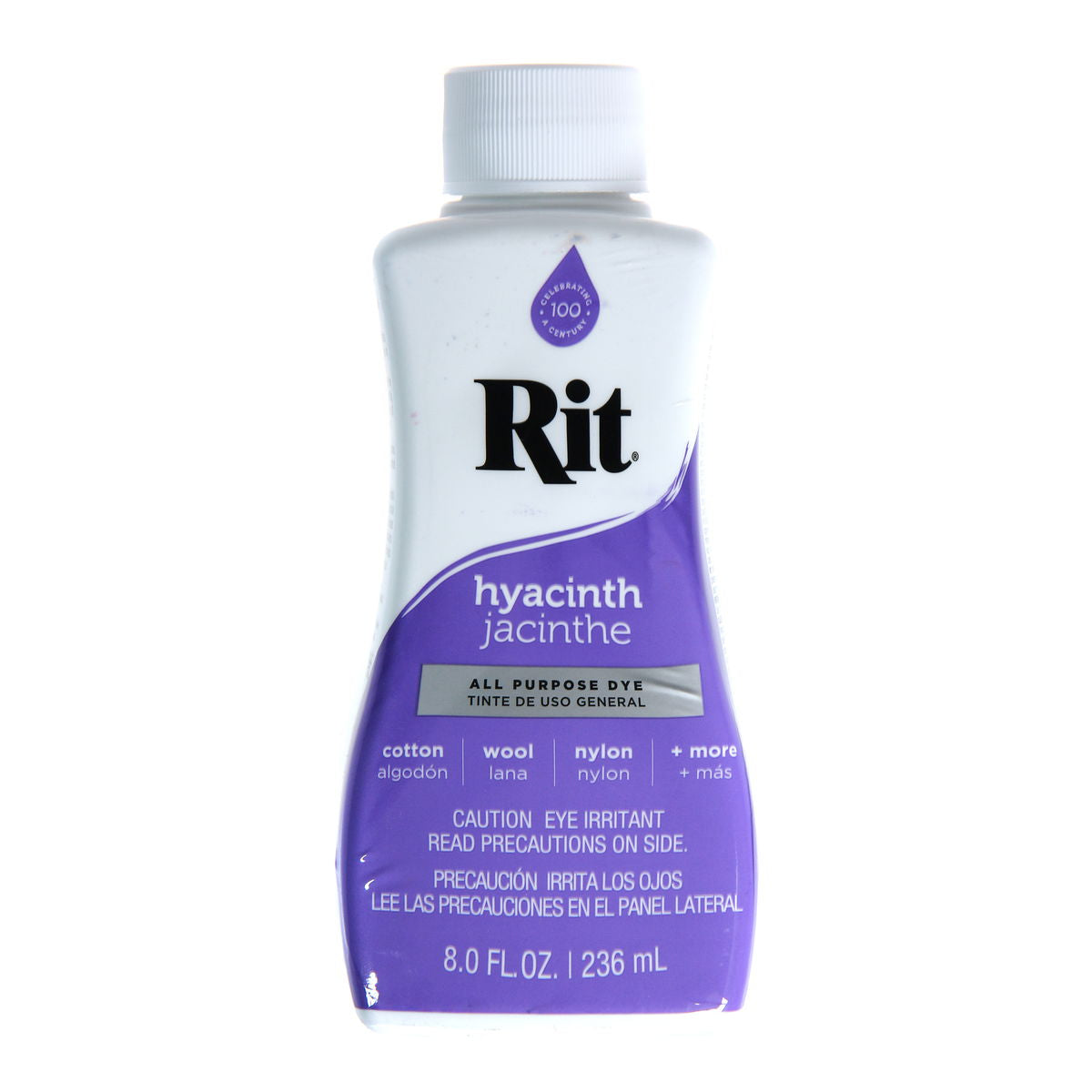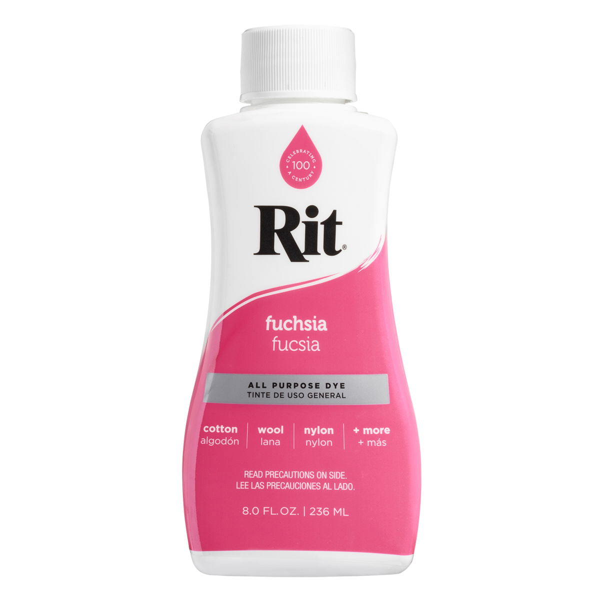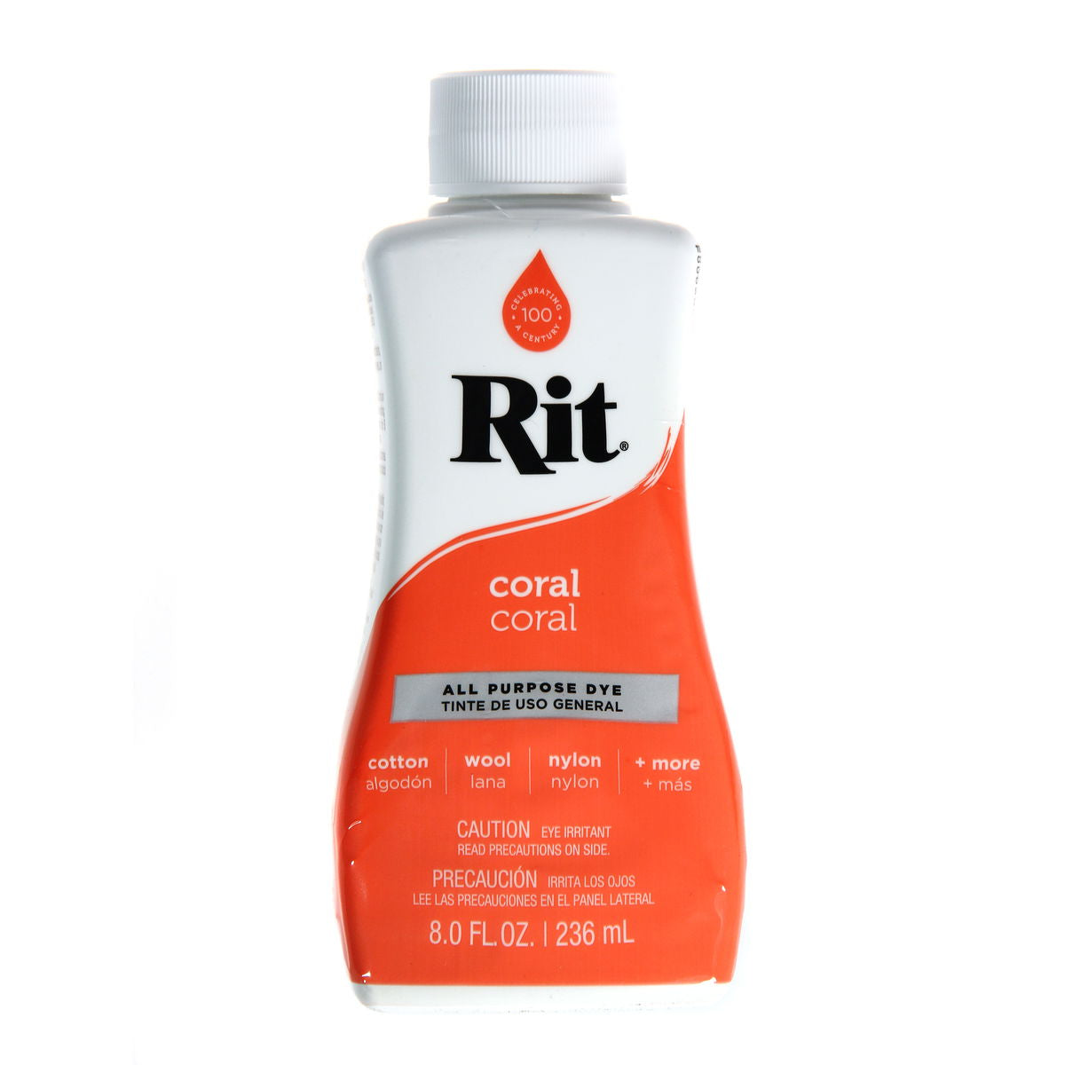 This versatile, easy-to-use and non-toxic liquid dye is ready to deliver vibrant color to almost any type of fabric or fabric blend including cotton, linen, silk, wool, rayon, ramie or nylon. Perfect for rejuvenating faded clothing, changing the color of apparel, shoes or accessories, coordinating home d cor, hiding laundry accidents and so much more. Looking to create something unique? Rit has been tie-dyeing clothing and d cor for decades. It s also the perfect tool to create an ombr , dip dyed, marbled or shibori pattern. It can even dye wood, wicker, paper and cork. Plus, because it is a pre-mixed concentrated liquid, you can use a little or a lot depending on your project and have the flexibility to save it for another time. Whether you are rescuing faded jeans, creating a costume, or decorating for a party, all you need is a washing machine, plastic container or stainless steel sink to get started. With 500+ color recipes, it is almost certain you ll find the right color for your needs. One bottle will color approximately 2 lbs. of dry fabric. Use double the quantity of dye for dark or bright colors such as black, navy blue, cocoa brown, purple, scarlet, etc. Use RIT Color Remover, in a 2 oz. box, to remove the existing color from fabric, giving you a dye-ready canvas for spectacular results and true color. It can also remove dye stains including color transfer in the laundry or to fix other dye mistakes. Use the 8 oz. liqiud RIT Fixative to reduce the fabric's colors from fading.