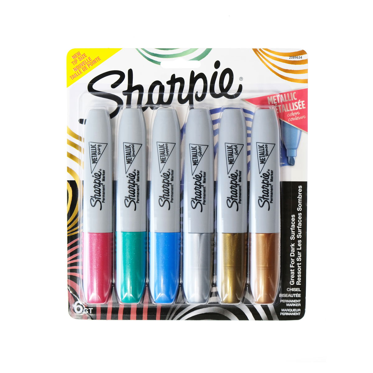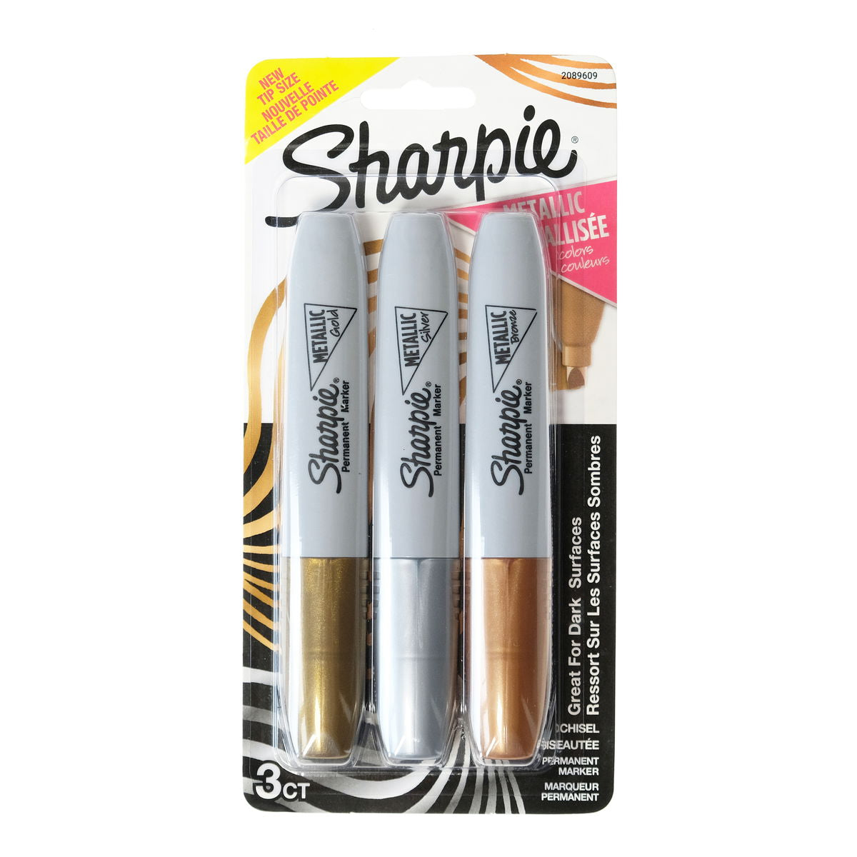 Leave a glimmering impression with Sharpie Metallic Markers. Never dull and always brilliant; Sharpie Metallic Markers leave a stunning, permanent impression on both light and dark surfaces. The authentic, opaque metallic finish comes without shaking to activate. Simply pull of top and immediately add dazzling sheen to almost any surface. Sharpie Metallic Markers are quick drying, with fad and water resistant ink, and are AP certified.