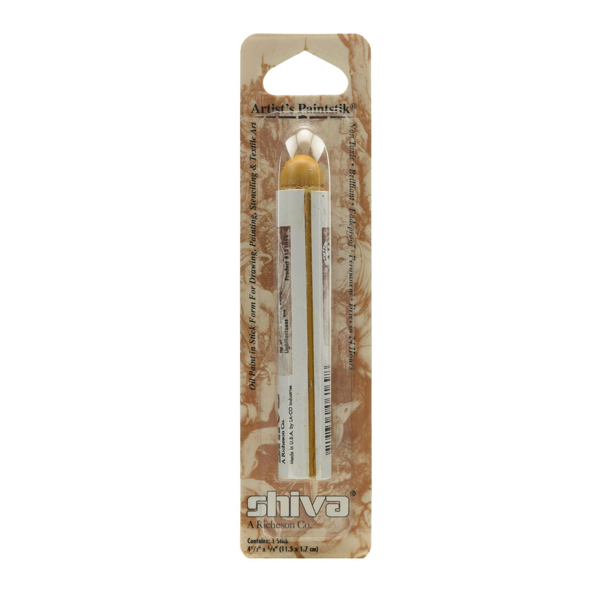 When you re ready to start your next oil painting, pick up Shiva Oilstix instead of a brush. Ideal for sketching and outlining, Oilstix consist of a refined linseed oil blended with quality pigment and solidified into a convenient stick form. Shiva Oilstix can be spread or blended and used in conjunction with conventional oil paints. They are self-sealing; just peel the seal before using. There are no unpleasant odors or fumes, so you can paint virtually anywhere, at any time. Shiva Oilstix work on almost any surface, including canvas, paper, wood, plastic, metal, glass, and glazed ceramics. They re also great for stamping, stenciling, and even fabric decorating! In most cases, the paint dries within 24 hours. The sticks measure 4 1/2 in. x 5/8 in.