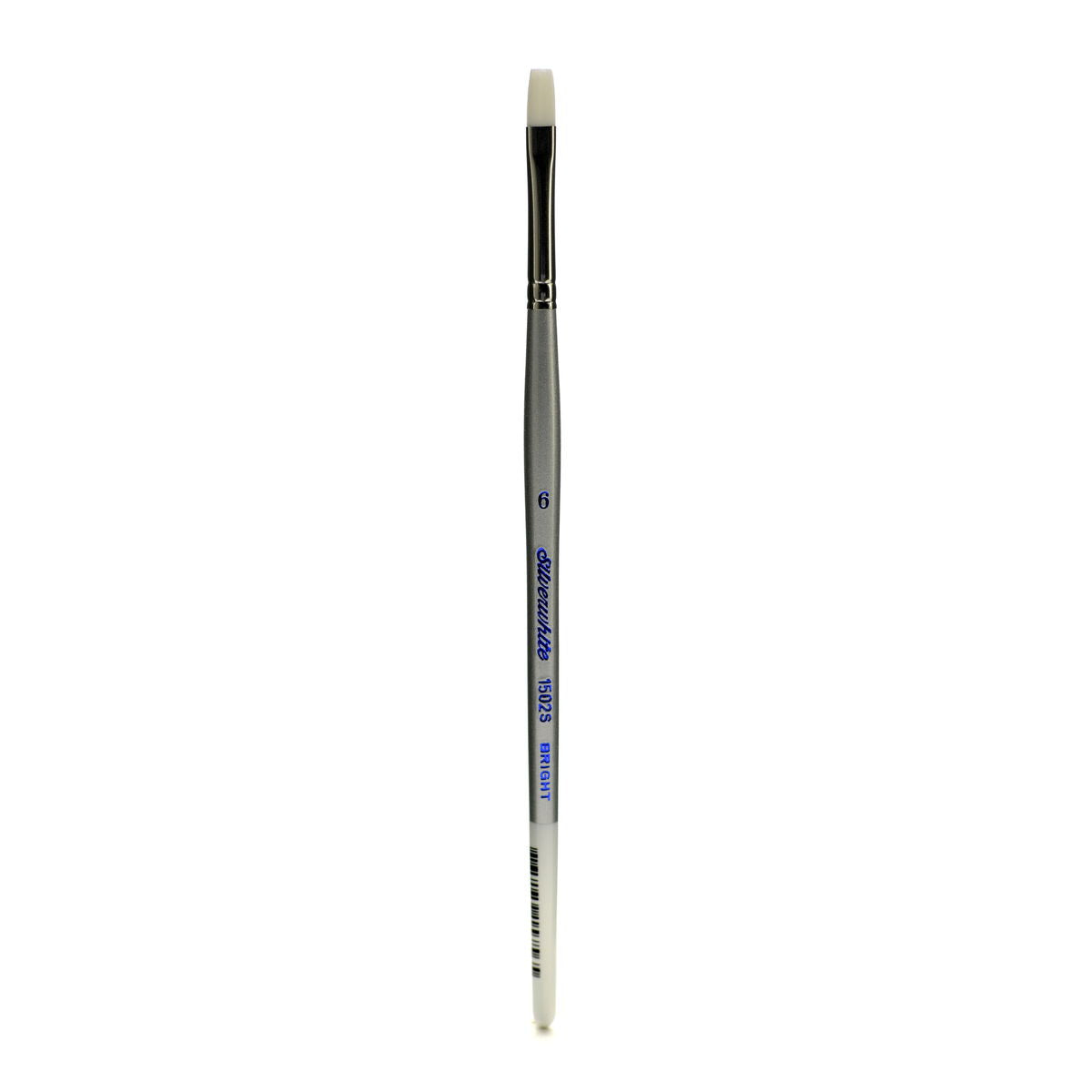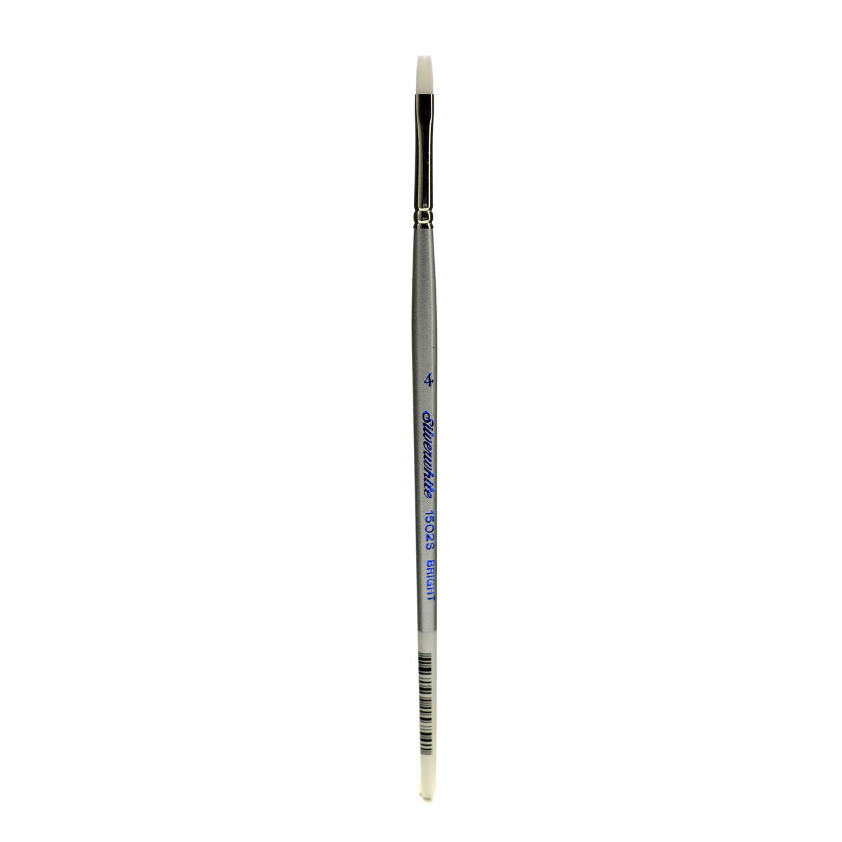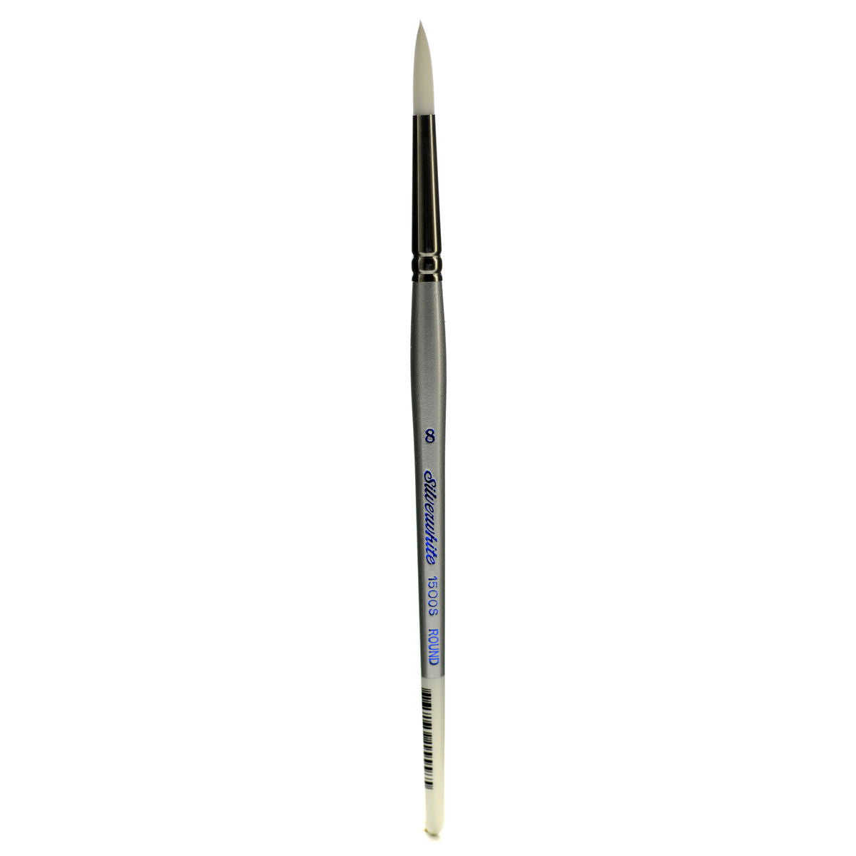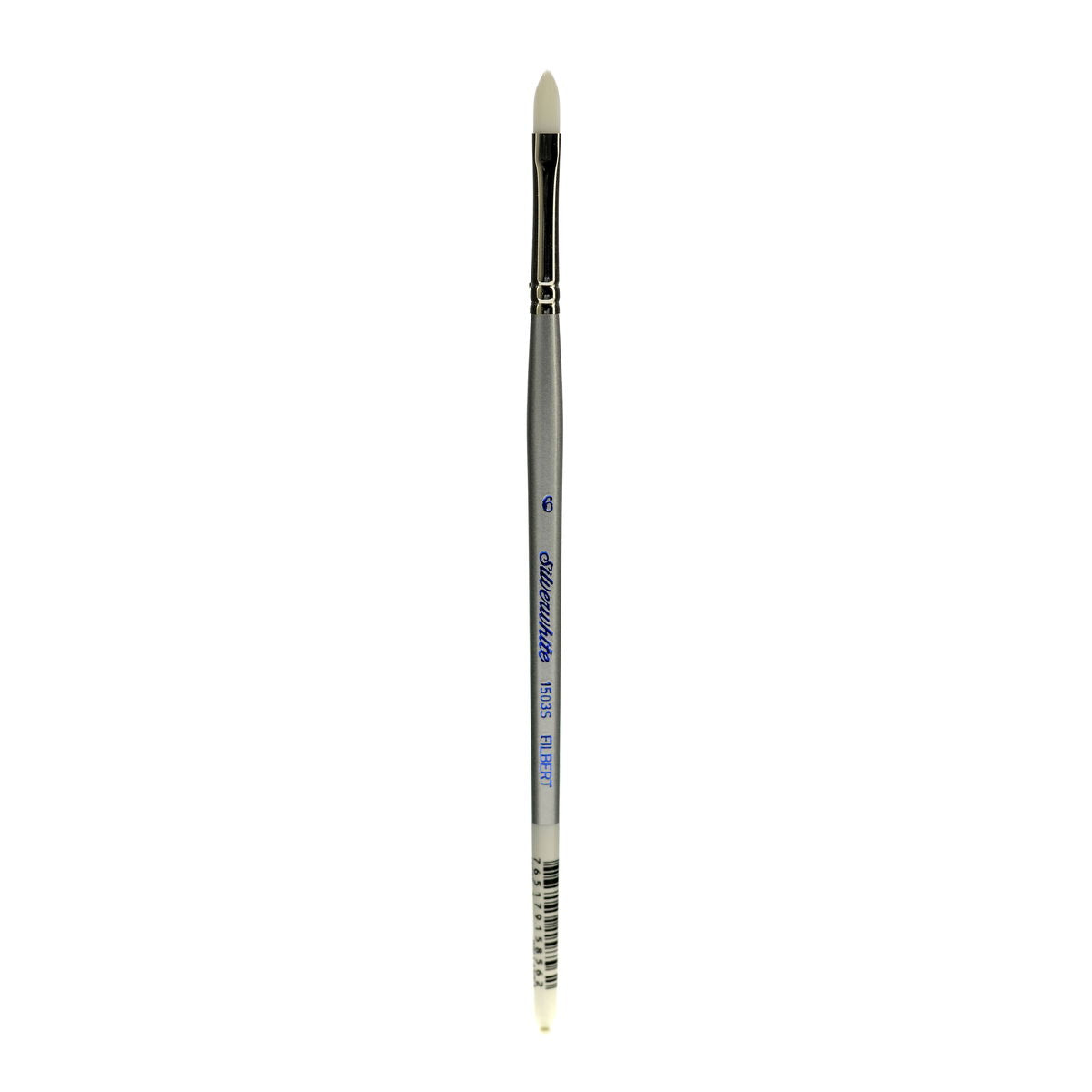 These soft white synthetic brushes are supple, durable and affordable. Made from specially selected and blended white taklon filament, their spring and color capacity duplicates the finest natural hair at a fraction of the price. Silverwhite brushes are suitable for all water-based media including acrylics, watercolor, gouache, inks, dyes, and tempera. They are fitted with polished, white-tipped, silver handles and seamless nickel ferrules. They offer extraordinary value for crafters, decorative artists, watercolorists, students, and hobbyists.