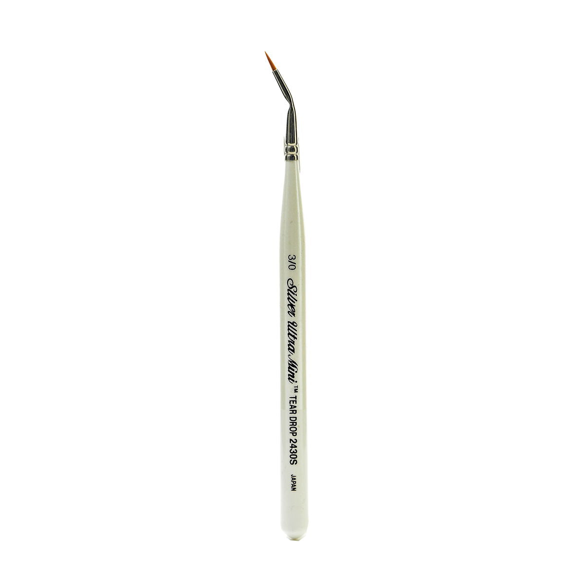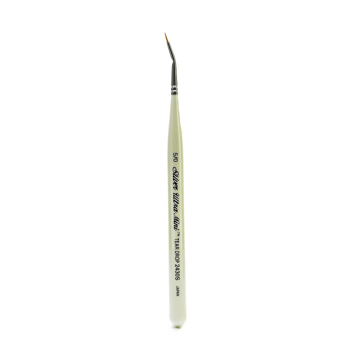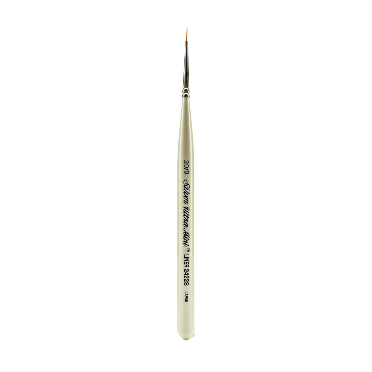 Miniature painting tools designed with short comfort grip handles and compact ultra fine heads, perfect for tight working spaces. Artists can paint all day in complete control, without cramped fingers from tiny handles. Precision size Golden Taklon filament is set into seamless nickel plated ferrules and mounted on iridescent pearl white handles. This series is designed to keep a sharp point for maximum control while holding a good supply of color. Recommended for use with watercolor, acrylics, gouache, ink, enamels, and oils.