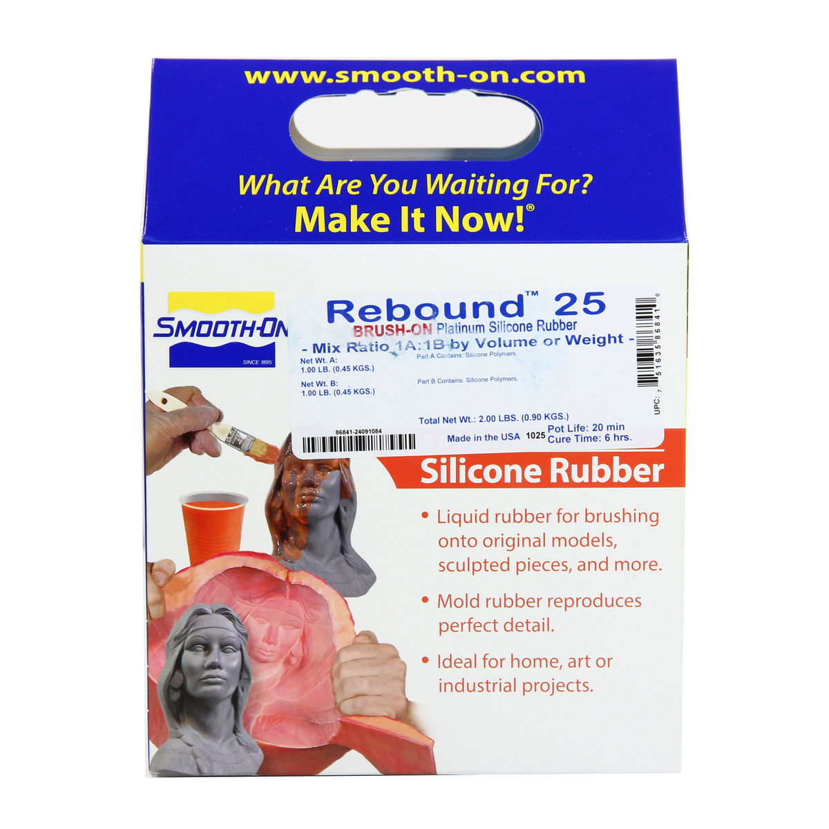 Rebound 25 is Smooth-On s easy-to-use silicone rubber with platinum-cure quality and self thickening properties. It makes a fantastic brush-on-mold for almost any model. Mix Rebound 25 1A:1B by volume (no scaling needed). Apply with either a brush or a spatula to vertical surfaces where it will not sag and will cure with negligible shrinkage. Cured rubber is soft, flexible, and excellent for making molds of models with deep undercuts, and depending on configurations it can be invertered for glove molds.