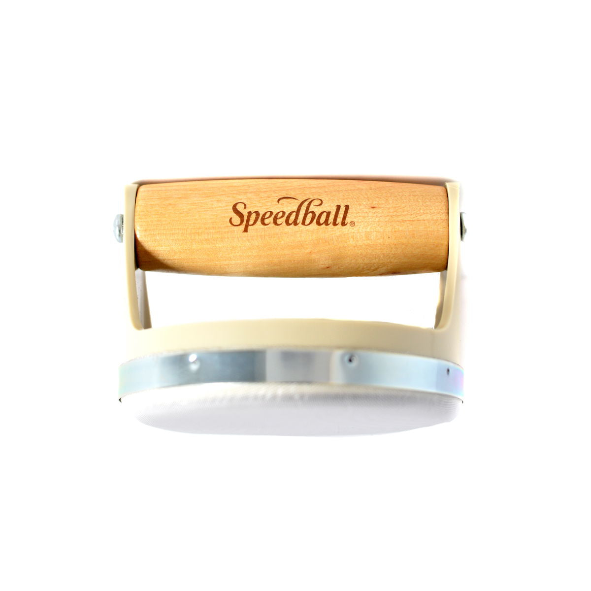 This 4 inch diameter baren for block printing is ideal for hand proof printing because it evenly transfers the image onto paper. The nylon rubbing surface is nearly friction free. Durable construction.