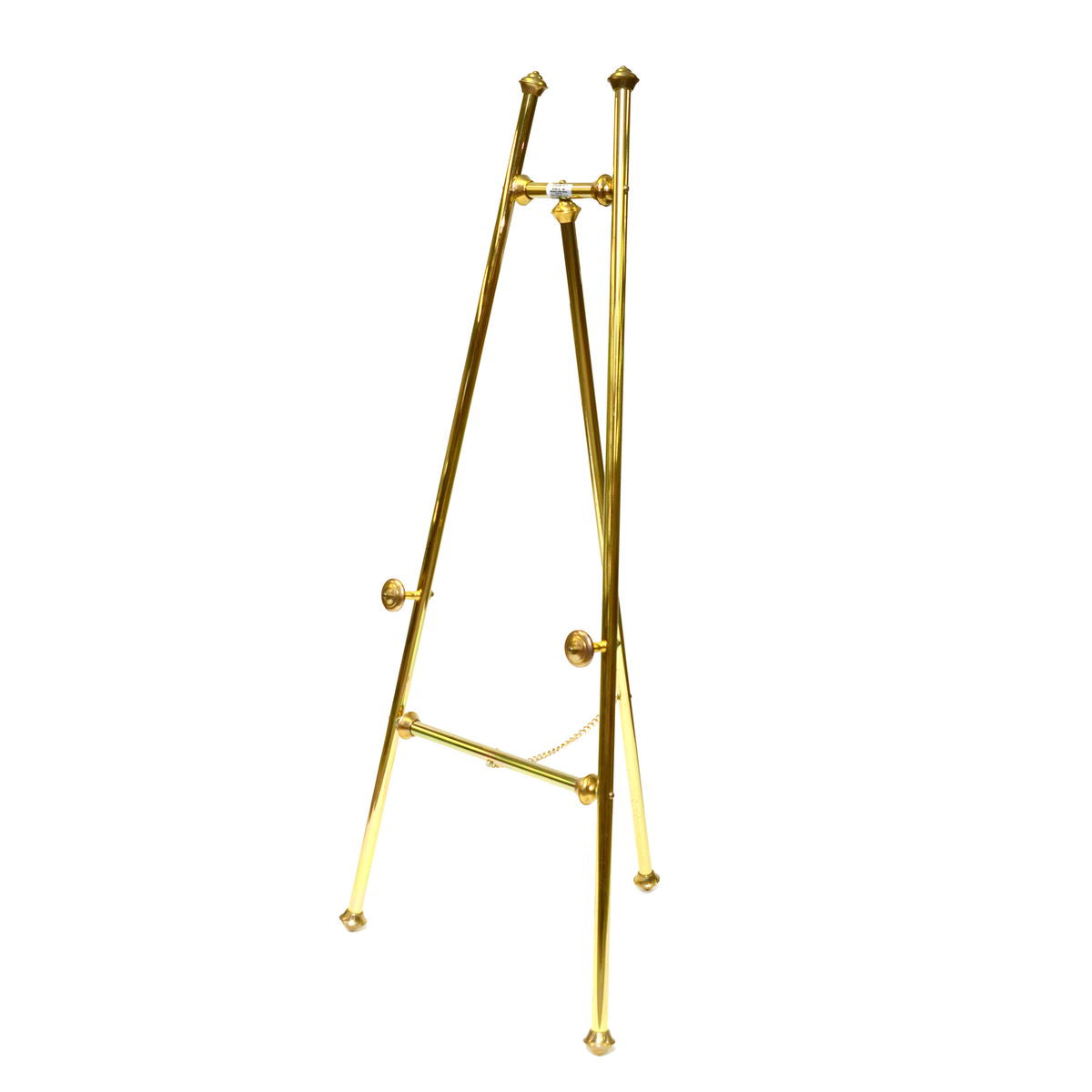 Elegant and decorative easel made of fine polished brass. Holds artwork and signs up to 48 in. tall. Total height is 61 in.