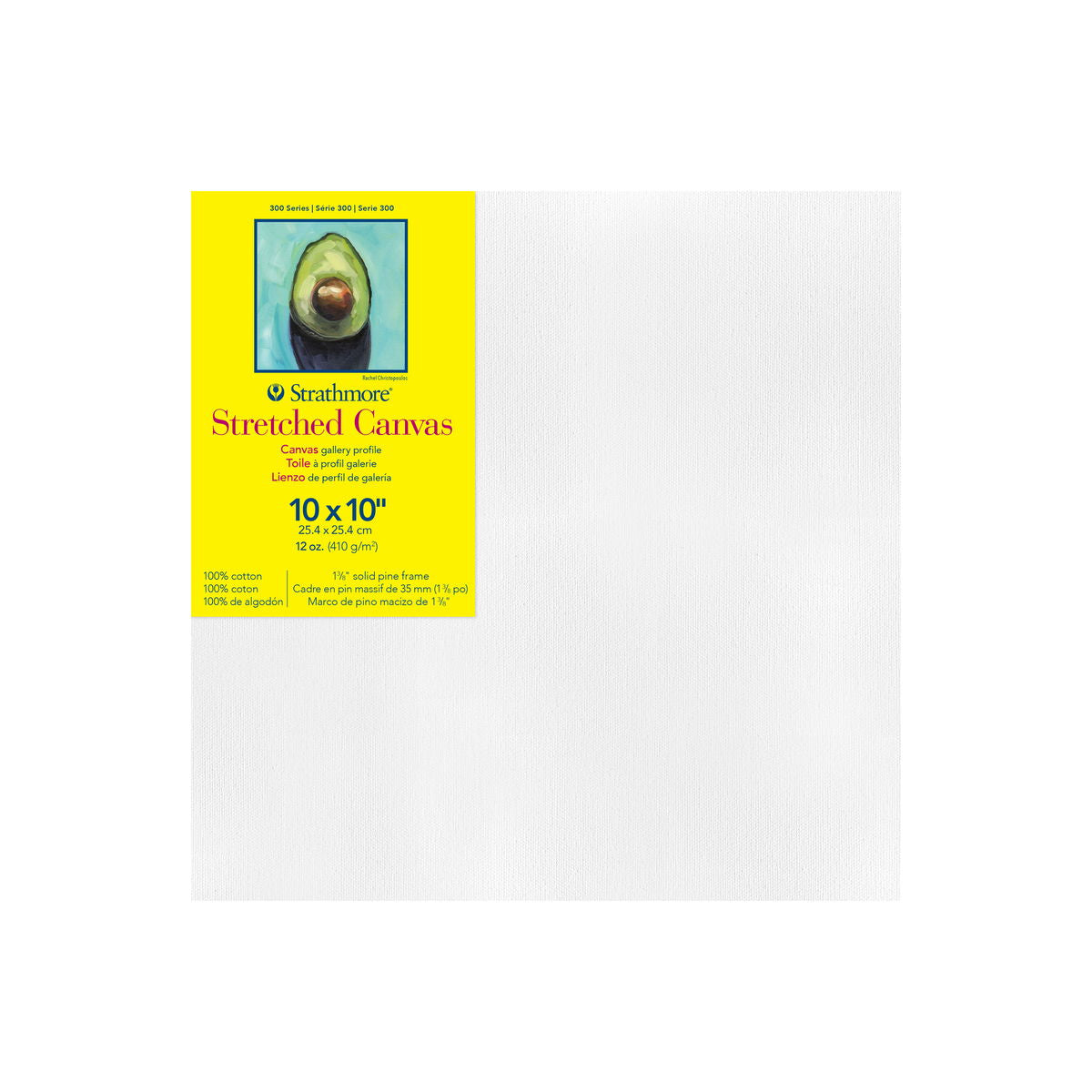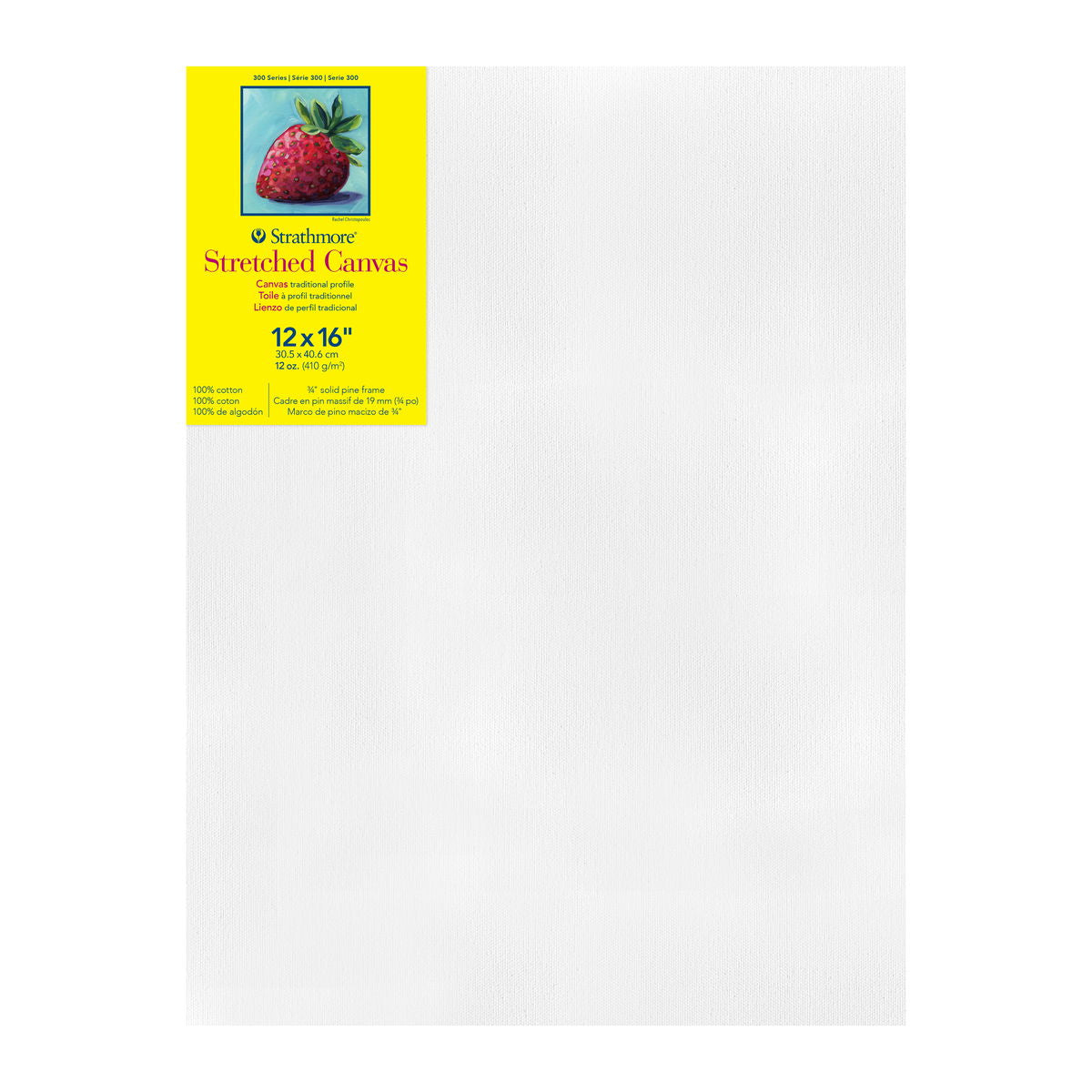 Strathmore 300 Series Stretched Canvas is an ideal choice for artists of all skill levels. Excellent for use with acrylic, oil and water mixable oil paints. They are also sturdy enough for heavy applications such as mixed media, collage and impasto. Available in traditional (3.4 in.) and gallery (1 3/8 in.) profiles.