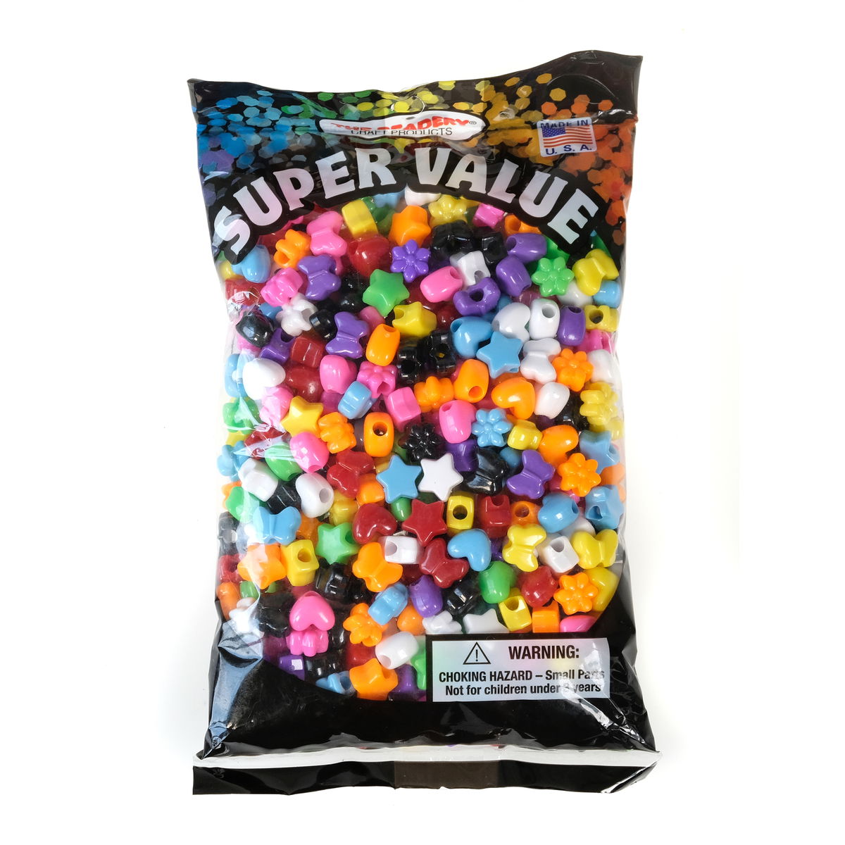These fun beads are colorful and easy to string. Great for kids to make jewelry or use in craft products. Available in a variety of shapes and sizes all in assorted color packs.