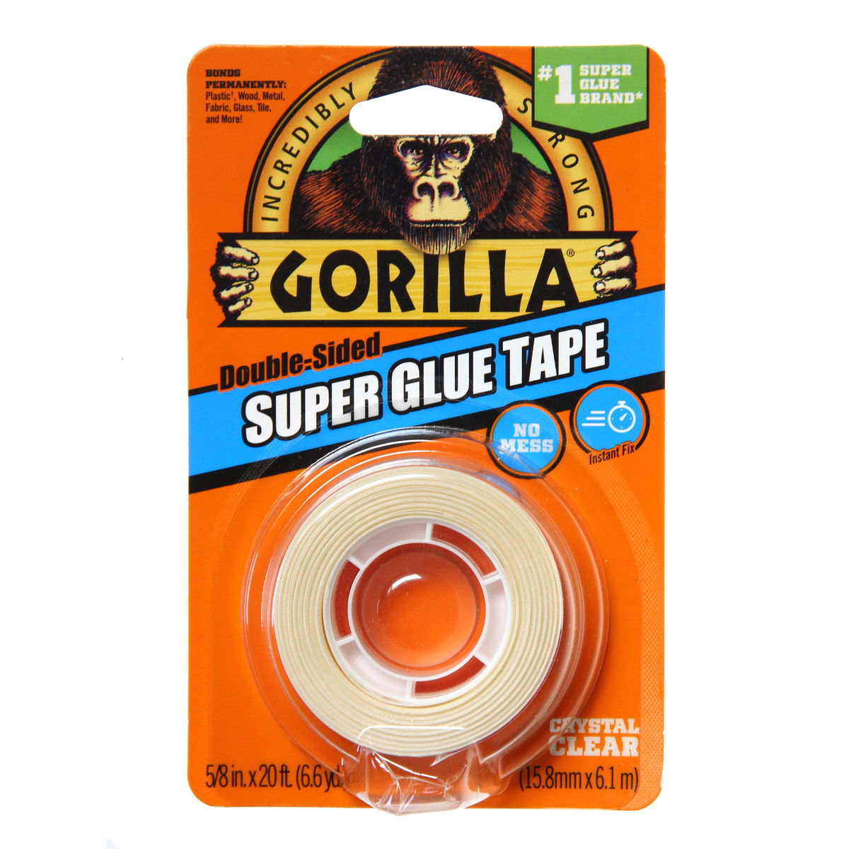 Great for permanent, multi-purpose repairs and quick fixes, Gorilla Super Glue Tape is a reliable solution. This tape is mess-free and extra sticky. It's hand tearable and fast setting. No clamps are required to set up. Available in a 5/8 in. x 20 ft. roll.