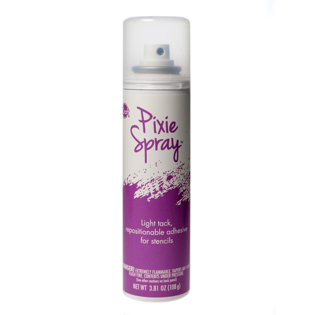 Spray your stencil with Pixie Spray first and you don't have to worry about it moving while you work. Use this light tack adhesive when applying sprays, paint, pastes and more through a stencil. The adhesive is strong enough to hold the stencil place, but will release without tearing your project. Available in a 3.81 oz. can.
