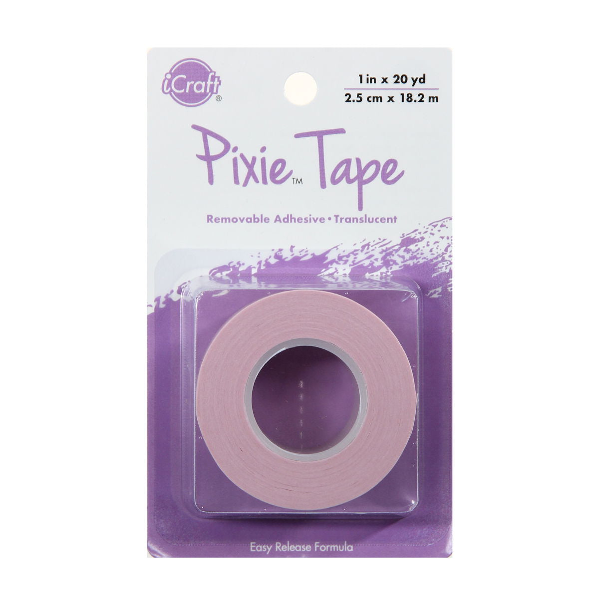 iCraft Pixie Tape, the easy-release, translucent, removable tape, doesn t leave any adhesive residue behind! iCraft Pixie Tape peels cleanly without tearing paper, yet is durable enough for a wide range of creative techniques like stenciling, masking and diecutting. The light pink color is not only cute, but also translucent to help with precise placement, like matching up stamps and coordinating dies. The tint also makes it easy to see against white cardstock. Available in a 1 in. x 20 yd. roll.