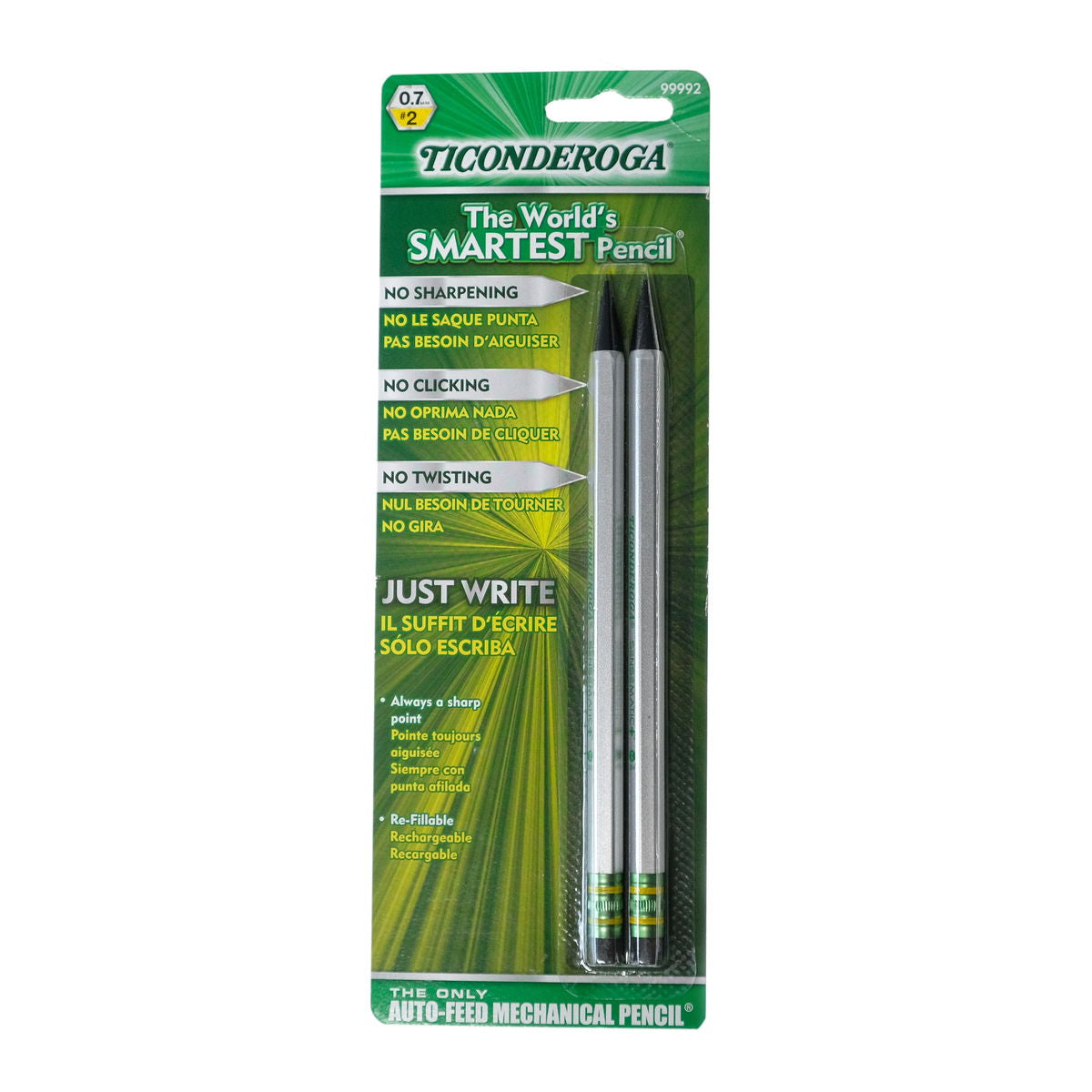 No clicking, no twisting, no sharpening! The Ticonderoga Sensematic is the world's only auto-feed mechanical pencil. Simply touch the pencil to paper and the Sensematic "senses" how much lead you need, advancing just the right amount as you write. You'll never again have to stop writing or drawing in order to sharpen your pencil. Available in a carded pack of 2.