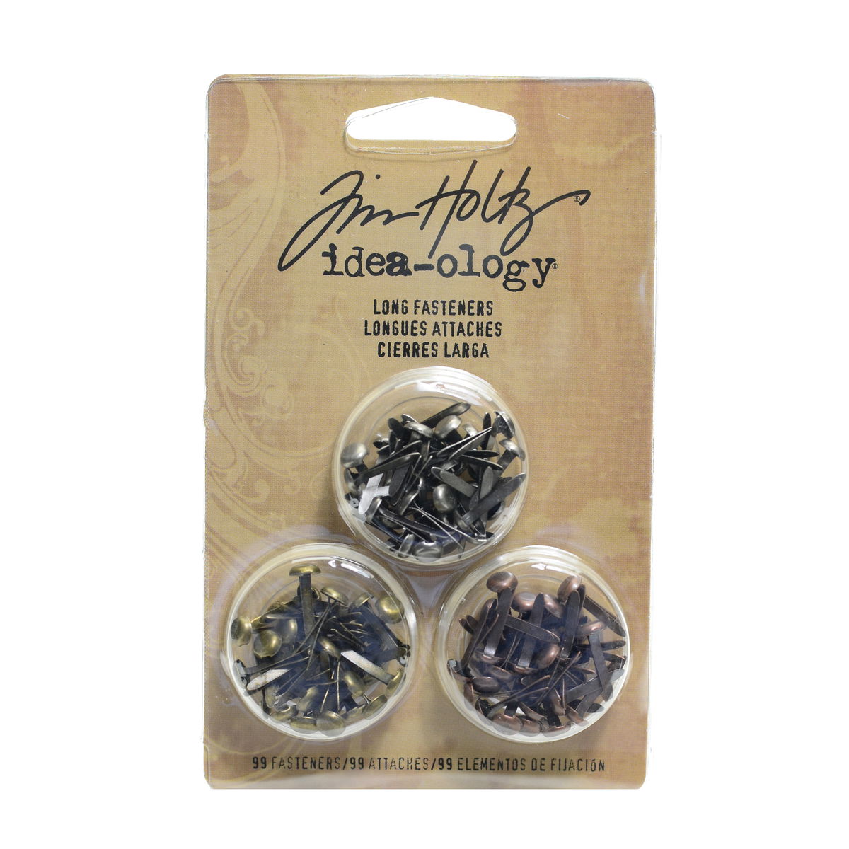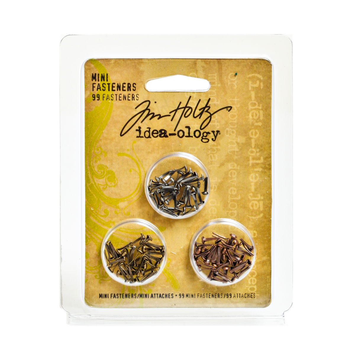 Attaching elements to your projects has just gotten easier with this fashionable and creative collection of metal fasteners. The Book D-Rings come in a pack of 6 large and 6 small in nickel, brass, and copper antique finishes. Their simplistic design allows you to assemble your mini books on the straight side so the pages will stack perfectly when closed. The Charm Clips come in a mixed pack of 24 with 8 each of nickel, brass, and copper antique finish. Designed with a split ring on one end so you can slide it onto your card, photo or scrapbook page and a tiny ring on the other to attach a charm or other element with the included jump rings. The Hanger Clips with a nickel finish are designed to look like mini clothes hangers. The Jump Rings come in a pack of 39 large and 36 small in nickel, brass, and copper antique finishes. The metal is strong enough to hold your elements, yet flexible enoughto be opened and closed by hand. The Long Fasteners come in a pack with 33 each nickel, brass, and copper finished brads. The longer fastening end allows you to attach things onto thicker materials. The Mini Fasteners come in a pack with 33 each nickel, brass, and copper finished mini brads. they have debossed markings on top to resemble tiny screws. The Small Ring Binder allow you to create mini books and other projects without the need of book making machines. The Swivel Clasps come in a pack with 4 each nickel, brass, and copper finished clasps. The clasp swivels open to attach findings and has an attached chain for hanging things from. It's also perfect for a closure to mini books or as a jewelry finding.