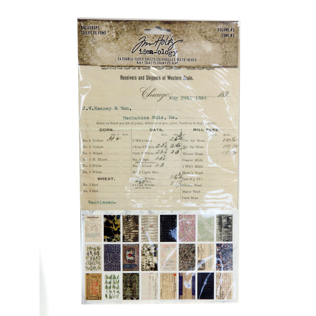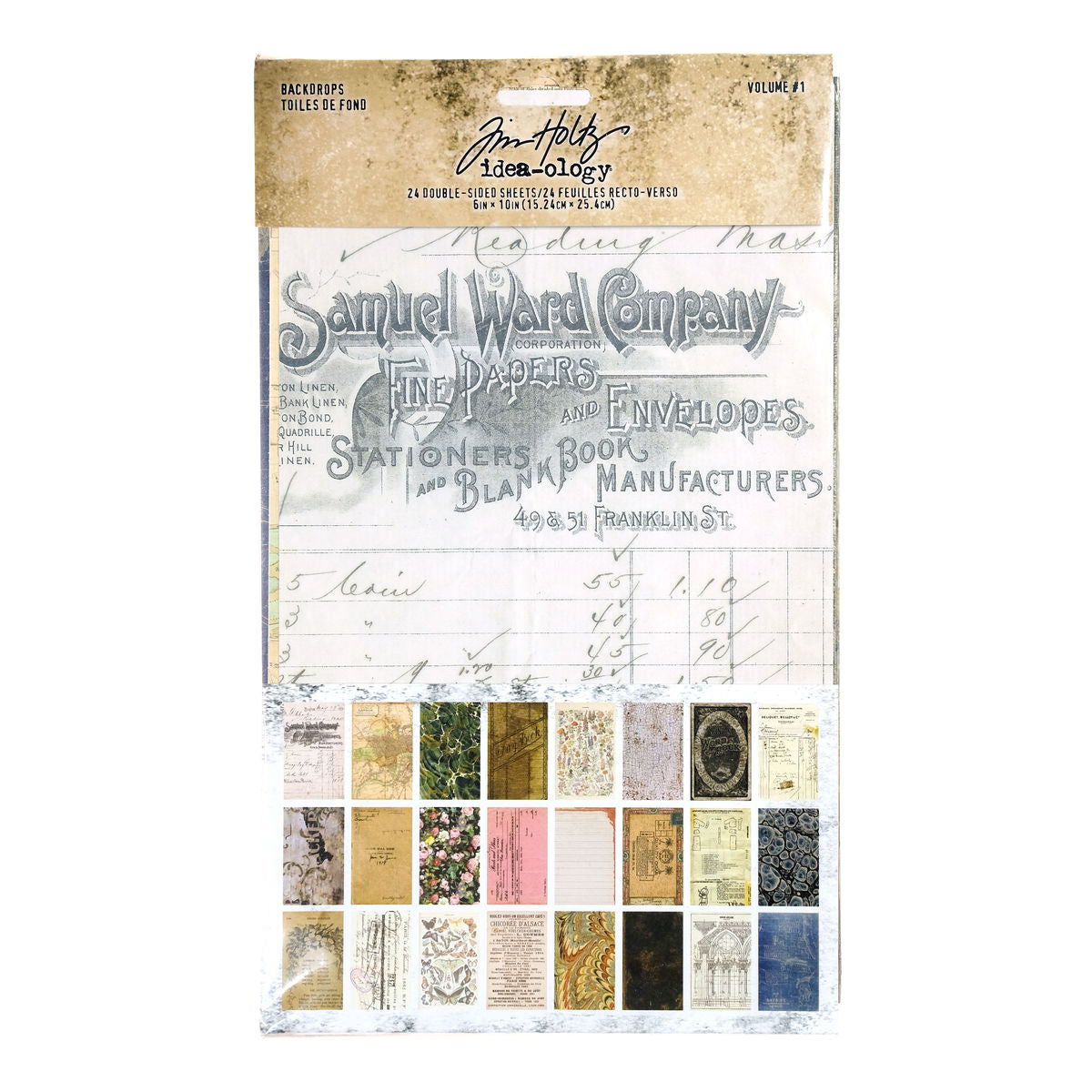 Paperie encompasses various paper packs, ephemera packs, label stickers, word stickers wallpaper scraps and other unique embellishments to add to your creative projects. Paper Dolls Solos and Paper Dolls Groups are clipped vintage portraits great for paper craft projects. Alpha Tiles, Type Chips, and Stencil Chips offer individual chipboard letters or numbers. Journal Cards contain 100 cards (25 each of 4 different sizes) for recording ideas or reflections. Layers are a curated selection of salvaged elements for mixed media. Remnant Rubs are pressure sensitive transfers that can be applied to various surfaces. Back Drops are a collection of 24 double-sided 6 in. x 10 in. printed memorabilia papers capturing the nostalgic elements from the past. Collage Papers are rolls of thin, semi-transparent paper, great for collage.