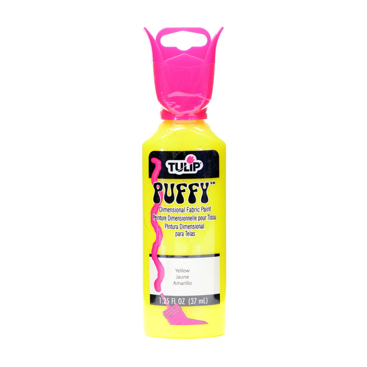 Tulip Puffy Dimensional Fabric Paints create a durable puffy effect on your fabrics and crafts. The non-toxic paints are formulated for strong adhesion on wood, glass, fabric, and more! The paints are available in 1.25-ounce (37 ml) bottles with the EasyFlow design, reducing hand fatigue and improving accuracy and precision. The bottles also feature cap stands, so you can store them upside down. This minimizes air bubbles and improves flow.