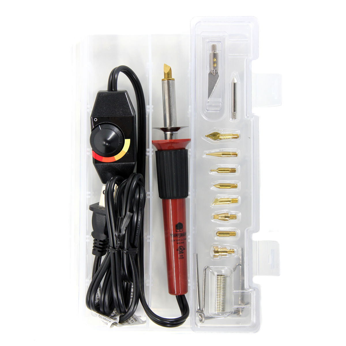 Walnut Hollow developed this heat tool for the individual who likes to do it all with a variety of options and functions required by hobbyists, crafters, and artists alike. The Tool is ideal for woodburning, leather crafting, soldering, stamping, paper crafting, hot-knife cutting, image transferring, embossing, stencil cutting, and item personalization. The Versa-Tool comes with: 450 - 950 Variable Temperature Control dial with On/Off setting Metal tool stand Plastic storage case with dividers 11 interchangeable points Lead free solder with rosin core Instructions and tips for suggested techniques Select from the following tips styles to fit your project: Universal Point, Flow Point, Tapered Point, Calligraphy Point, Shading Point, Transfer Point, Hot-Knife Point, Soldering Point, and 3 Hot Stamping designs.