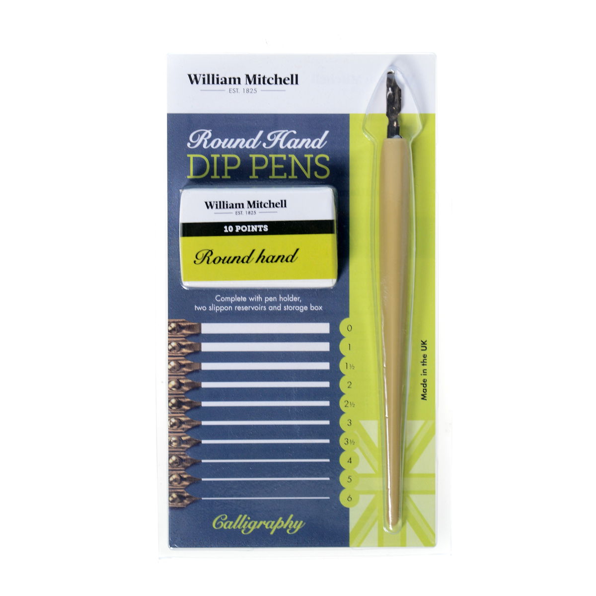 William Mitchell Calligraphy has been designing and manufacturing exceptional pens for almost 200 years and are the first choice of professional calligraphers and aspiring students. The Round Hand Dip Pens are the classic tools of calligraphy allowing a full, even flow of ink when used with the Mitchell Slippon Reservoir. Suitable for all types of edged pen lettering including Uncial, Foundational, Gothic, Roman and Italic hands. The set includes 10 points, a pen holder, 2 Slippon Reservoirs and a nib storage box.