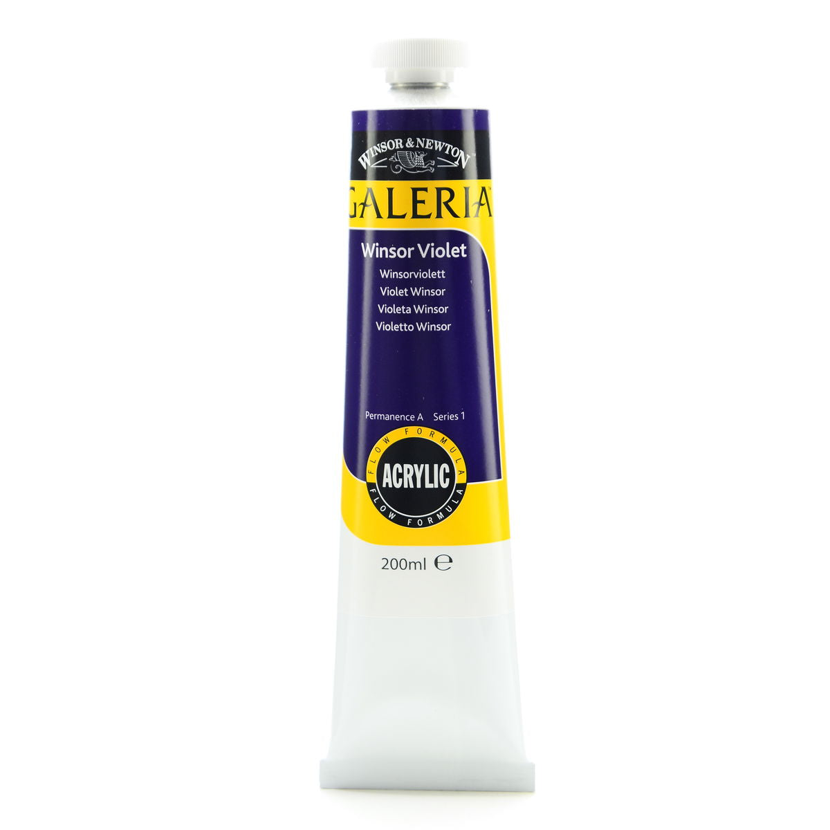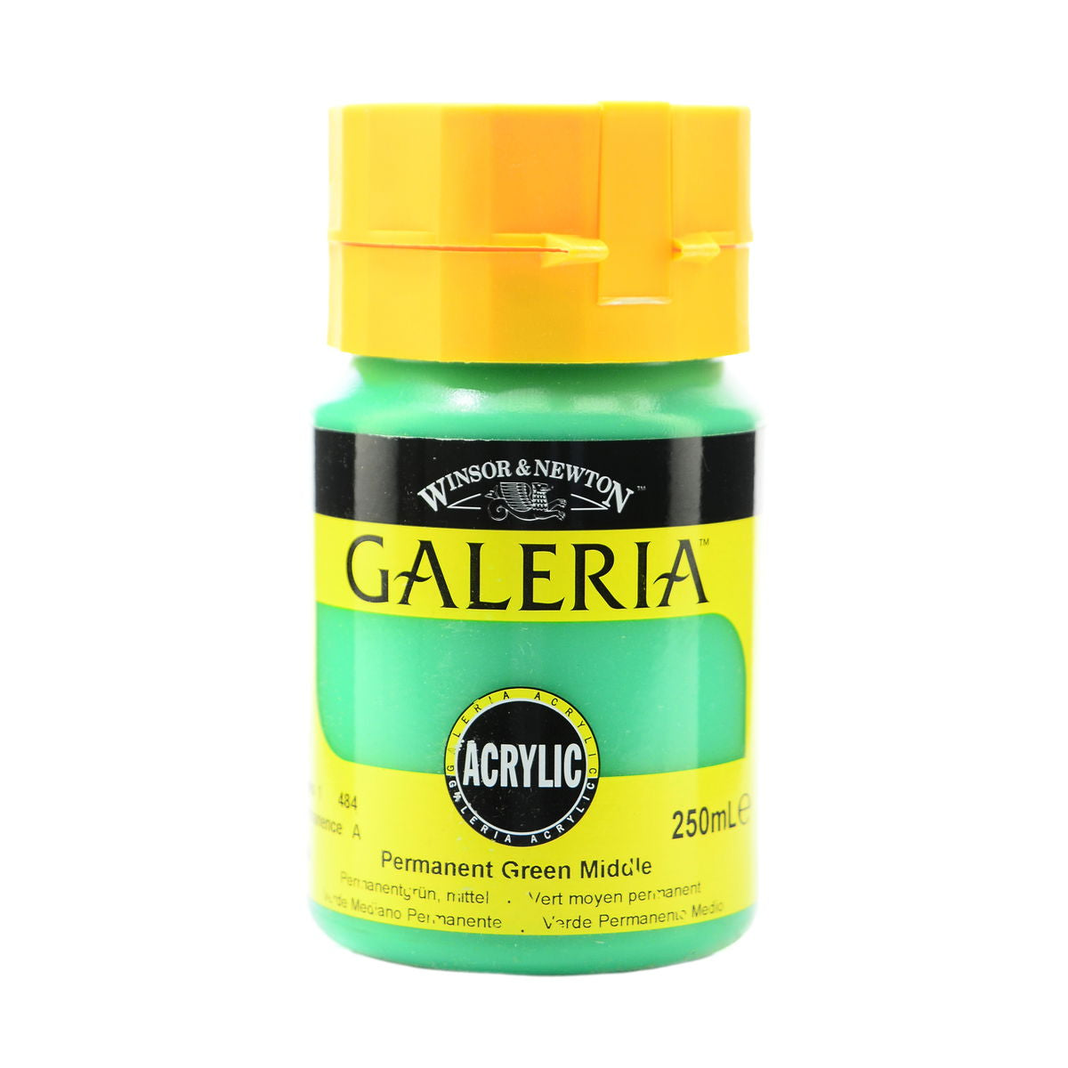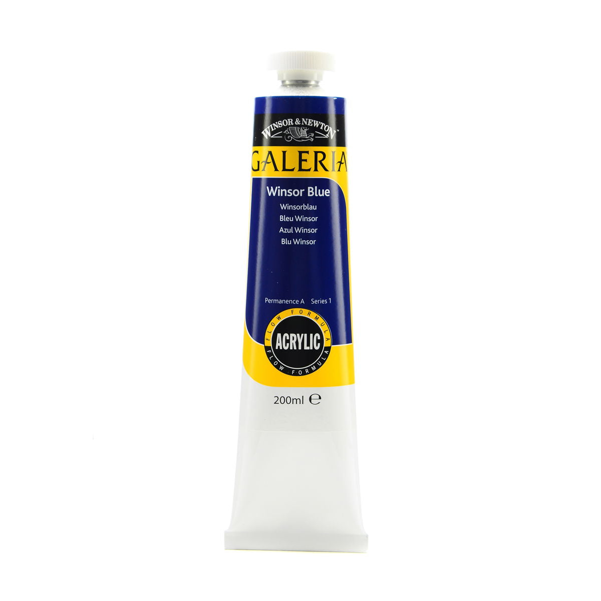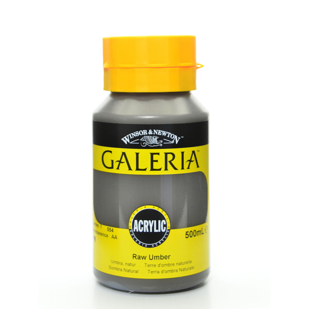 Galeria acrylic colors are for artists who require large quantities of quality acrylic paint at an affordable price. They have a smooth, free-flowing consistency that maintains its body and retains brush marks, and they can be easily diluted with water. These paints are extremely versatile and are suitable for a variety of techniques. Galeria acrylics have also been formulated to be fully compatible with the complete range of Winsor & Newton Artists Acrylic Colours and mediums. They are available in 60 ml and 200 ml tubes or 250 ml and 500 ml plastic squeeze bottles. The convenient wide necked squeeze bottles are fitted with nozzle caps that allow acrylic color to be applied smoothly and directly to the palette or canvas.