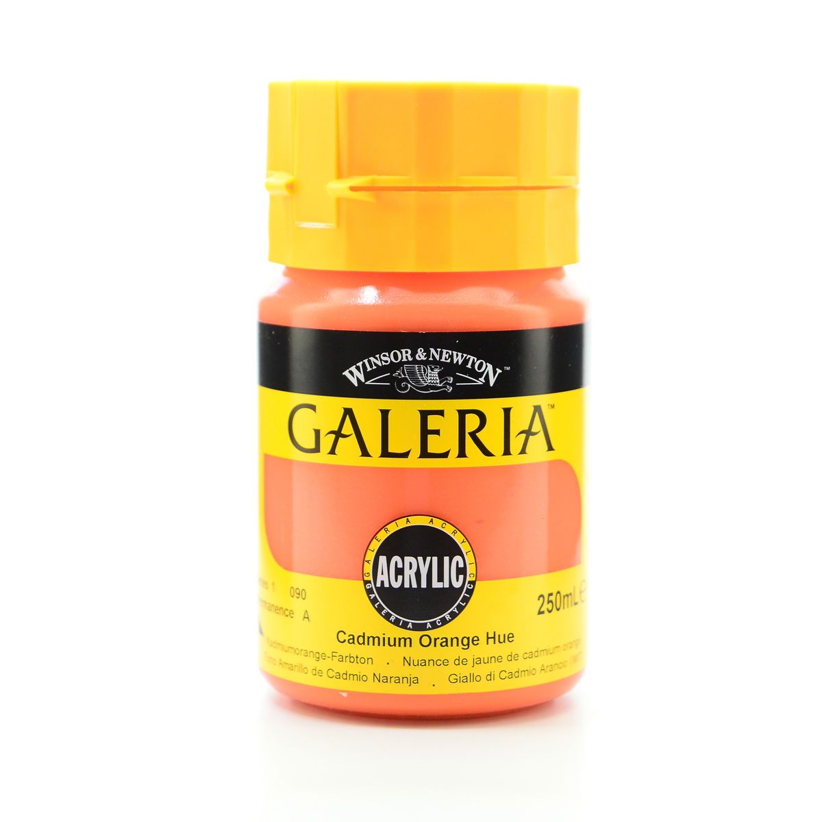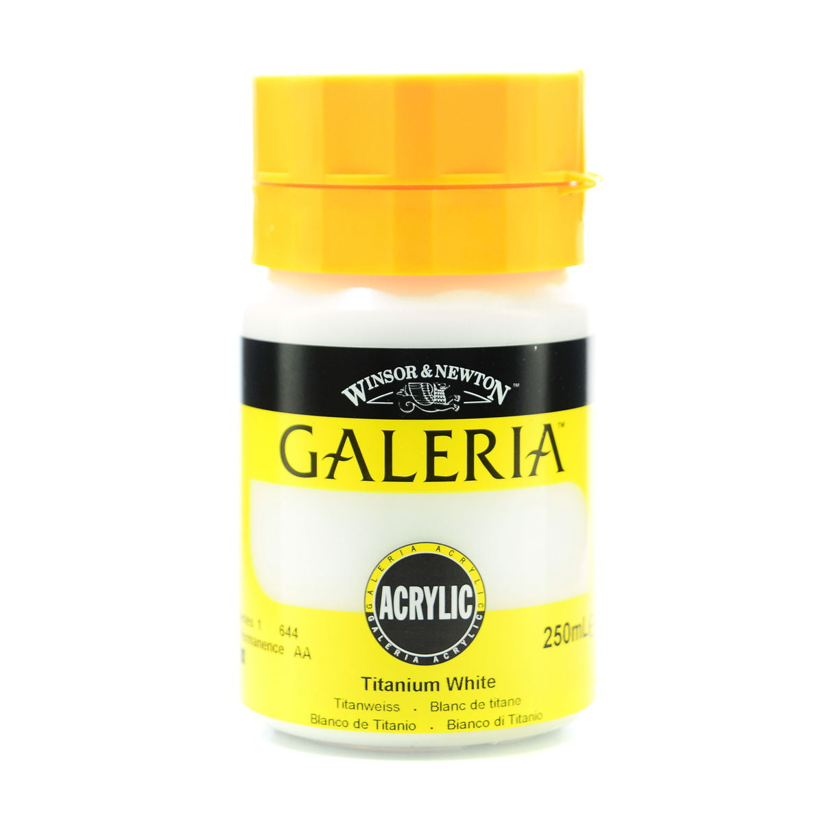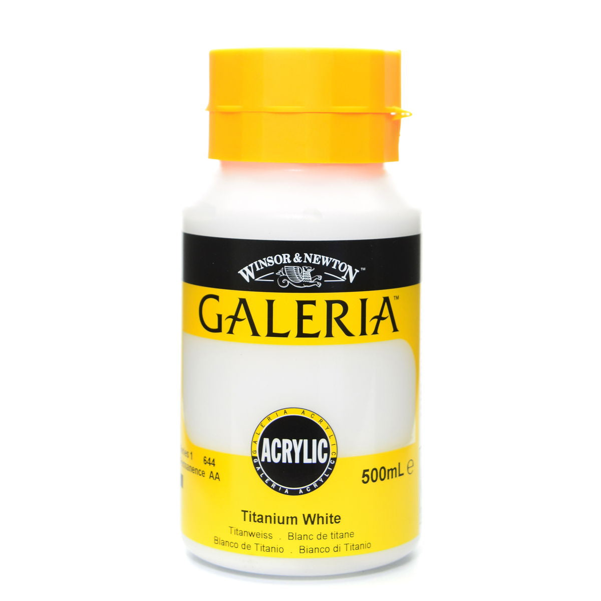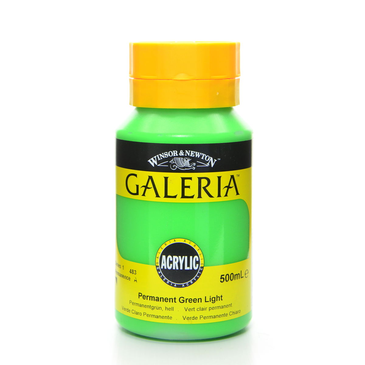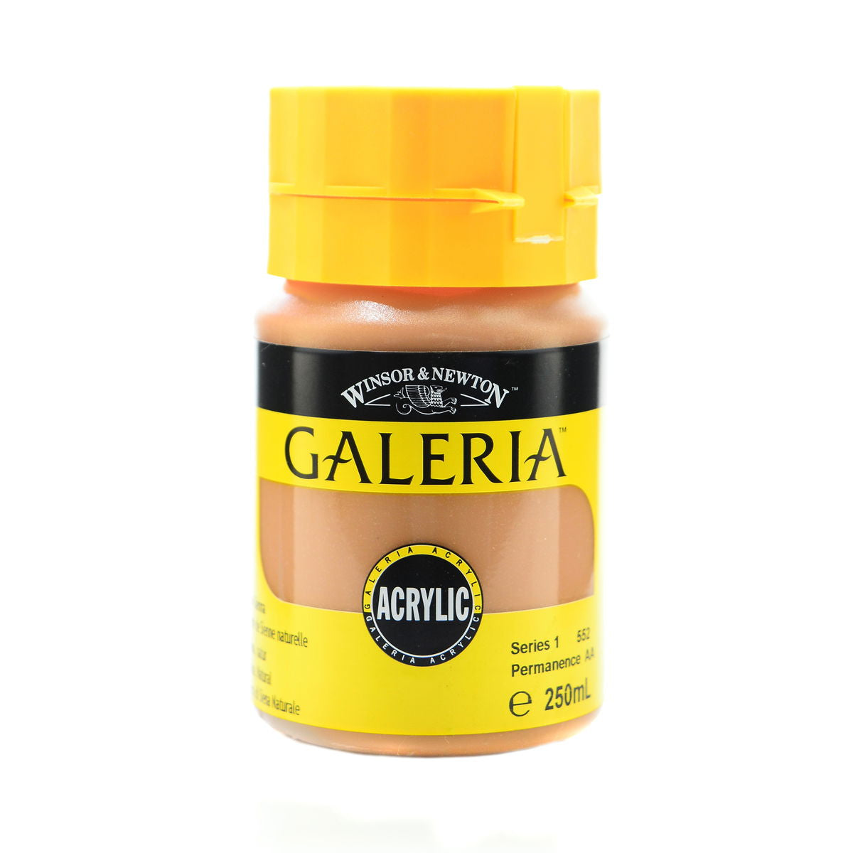 Galeria acrylic colors are for artists who require large quantities of quality acrylic paint at an affordable price. They have a smooth, free-flowing consistency that maintains its body and retains brush marks, and they can be easily diluted with water. These paints are extremely versatile and are suitable for a variety of techniques. Galeria acrylics have also been formulated to be fully compatible with the complete range of Winsor & Newton Artists Acrylic Colours and mediums. They are available in 60 ml and 200 ml tubes or 250 ml and 500 ml plastic squeeze bottles. The convenient wide necked squeeze bottles are fitted with nozzle caps that allow acrylic color to be applied smoothly and directly to the palette or canvas.