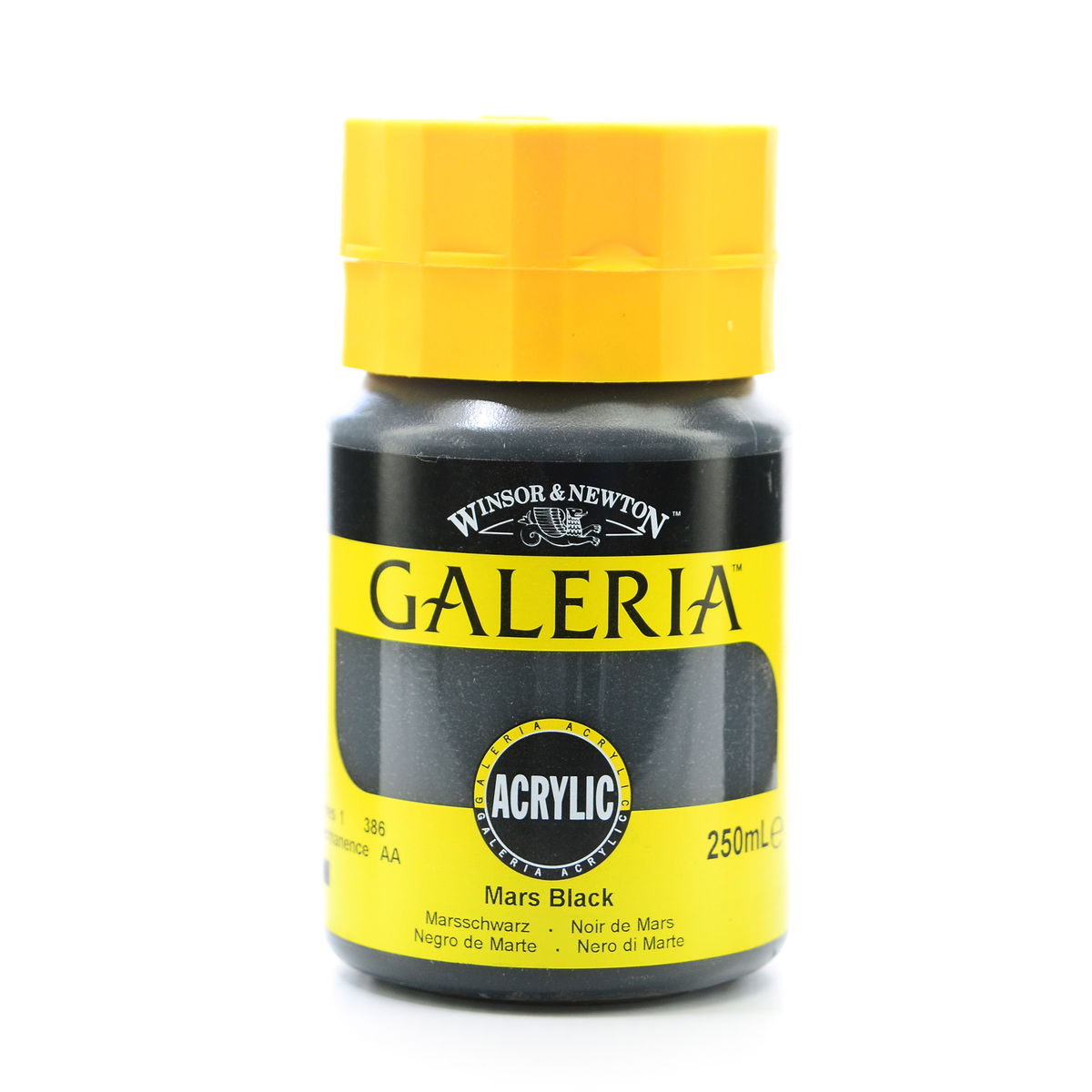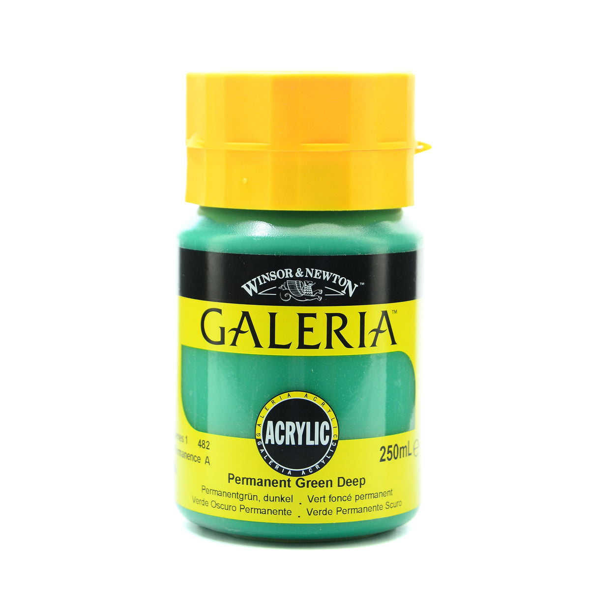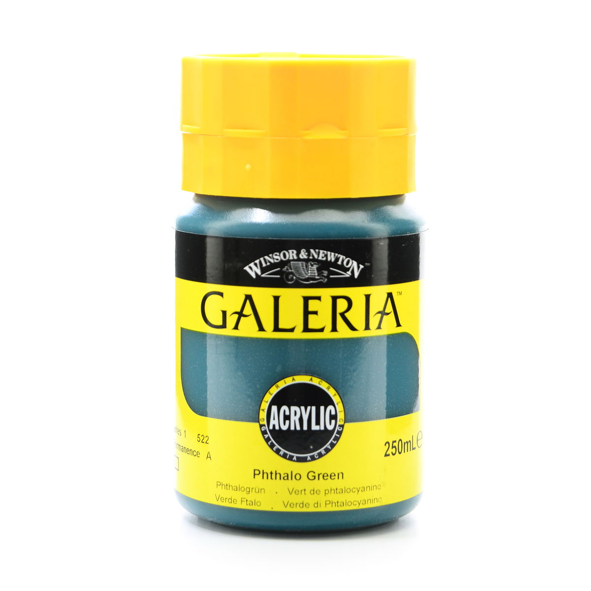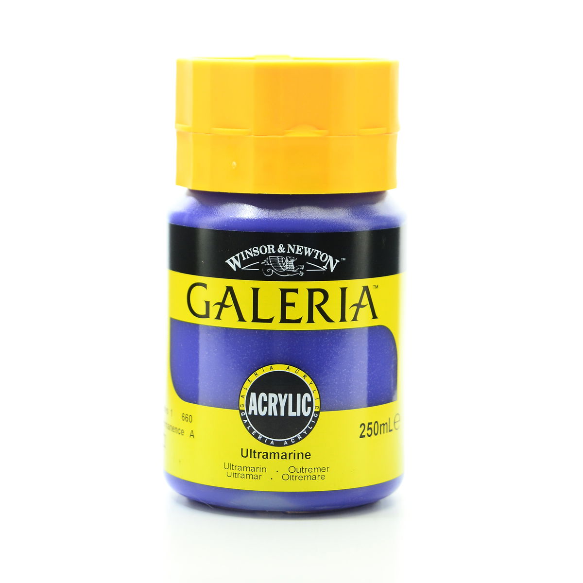 Galeria acrylic colors are for artists who require large quantities of quality acrylic paint at an affordable price. They have a smooth, free-flowing consistency that maintains its body and retains brush marks, and they can be easily diluted with water. These paints are extremely versatile and are suitable for a variety of techniques. Galeria acrylics have also been formulated to be fully compatible with the complete range of Winsor & Newton Artists Acrylic Colours and mediums. They are available in 60 ml and 200 ml tubes or 250 ml and 500 ml plastic squeeze bottles. The convenient wide necked squeeze bottles are fitted with nozzle caps that allow acrylic color to be applied smoothly and directly to the palette or canvas.