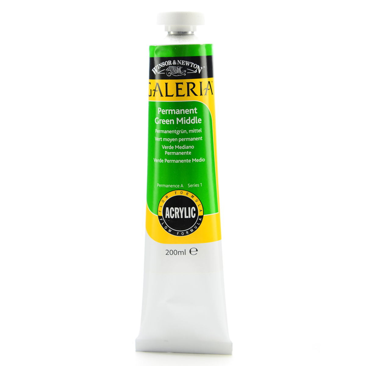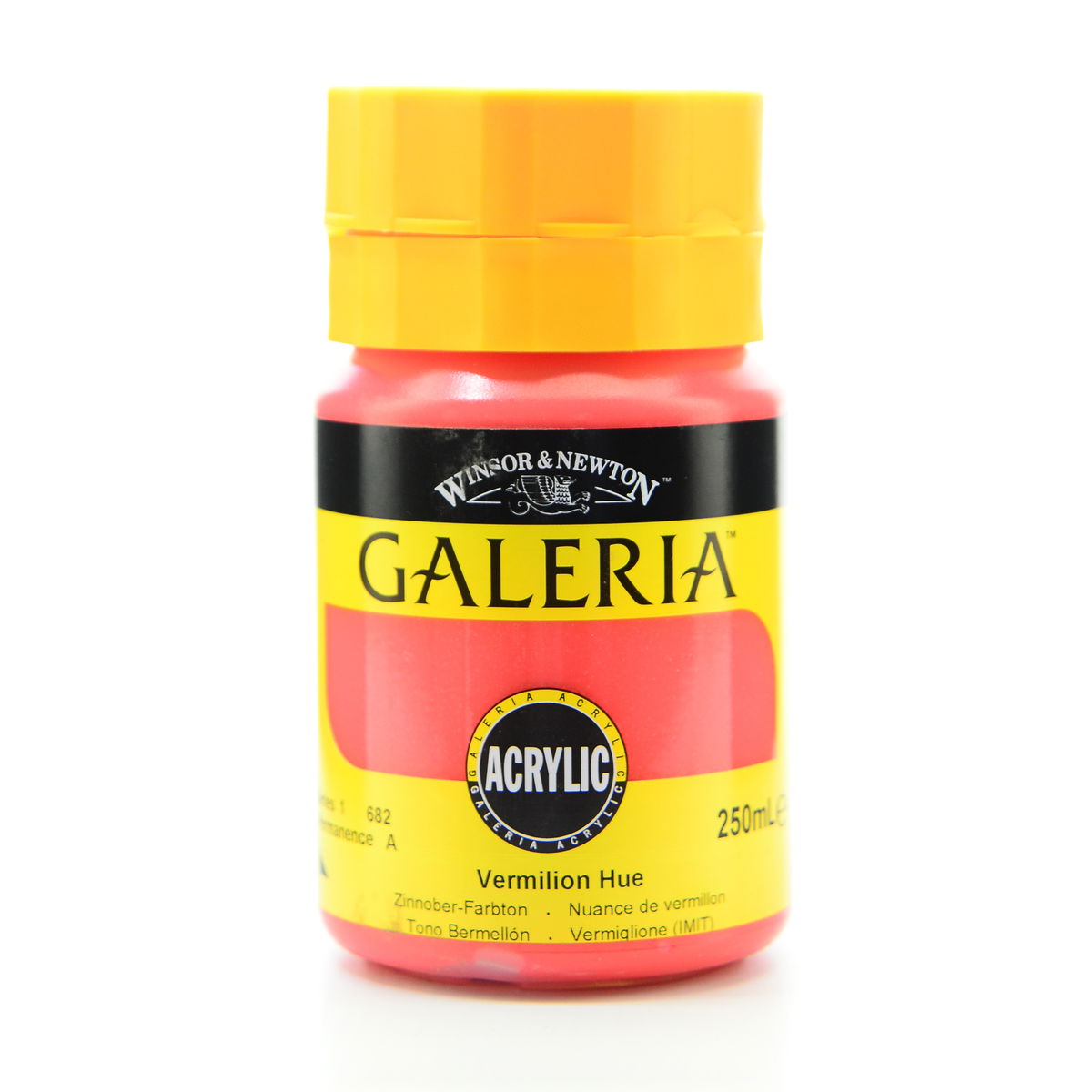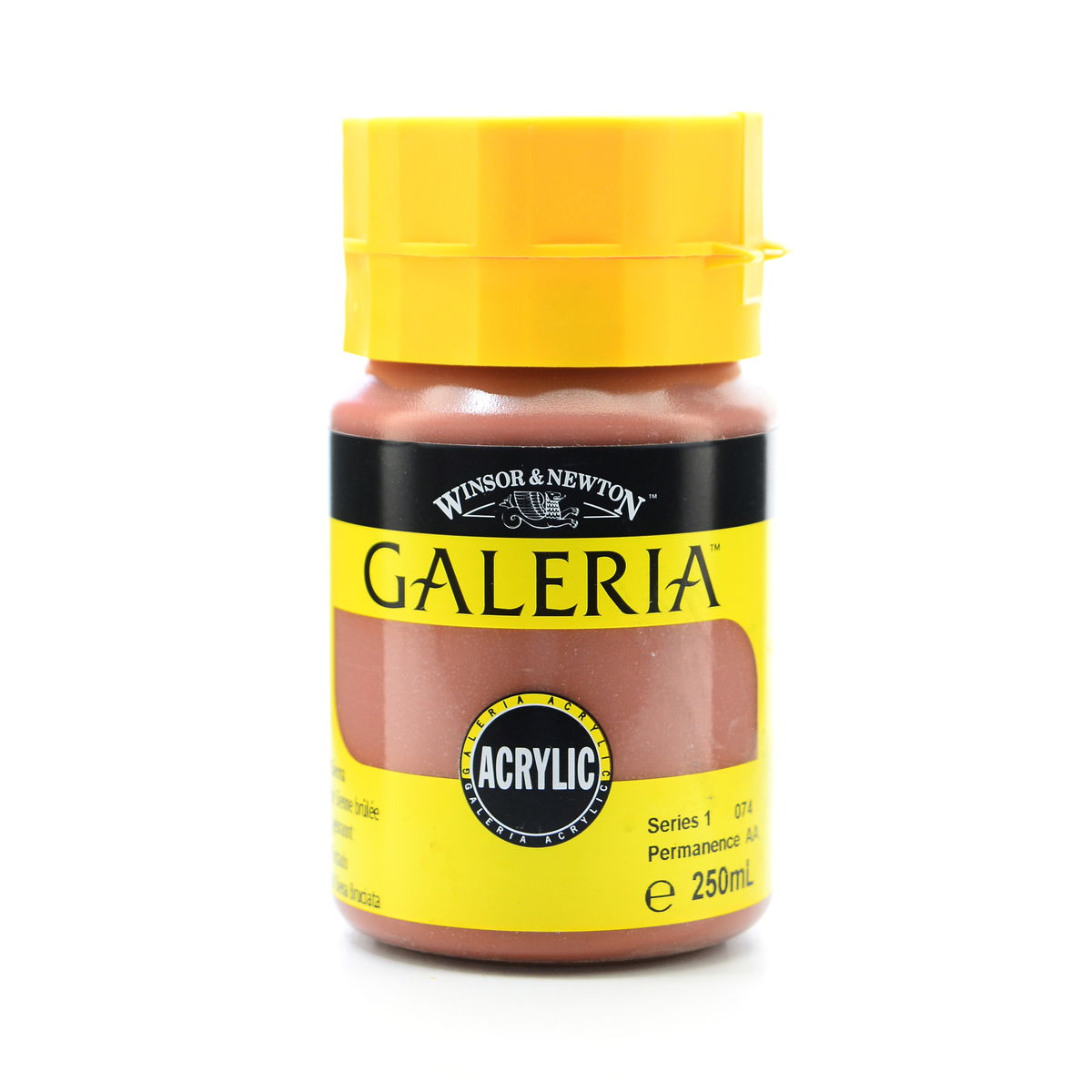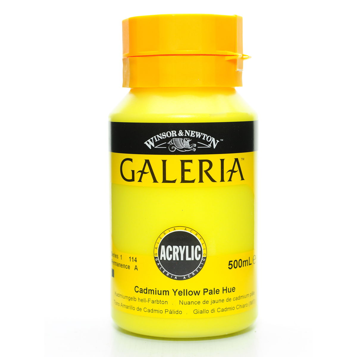 Galeria acrylic colors are for artists who require large quantities of quality acrylic paint at an affordable price. They have a smooth, free-flowing consistency that maintains its body and retains brush marks, and they can be easily diluted with water. These paints are extremely versatile and are suitable for a variety of techniques. Galeria acrylics have also been formulated to be fully compatible with the complete range of Winsor & Newton Artists Acrylic Colours and mediums. They are available in 60 ml and 200 ml tubes or 250 ml and 500 ml plastic squeeze bottles. The convenient wide necked squeeze bottles are fitted with nozzle caps that allow acrylic color to be applied smoothly and directly to the palette or canvas.