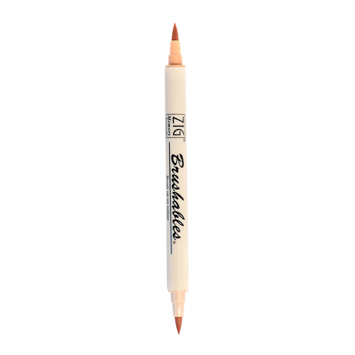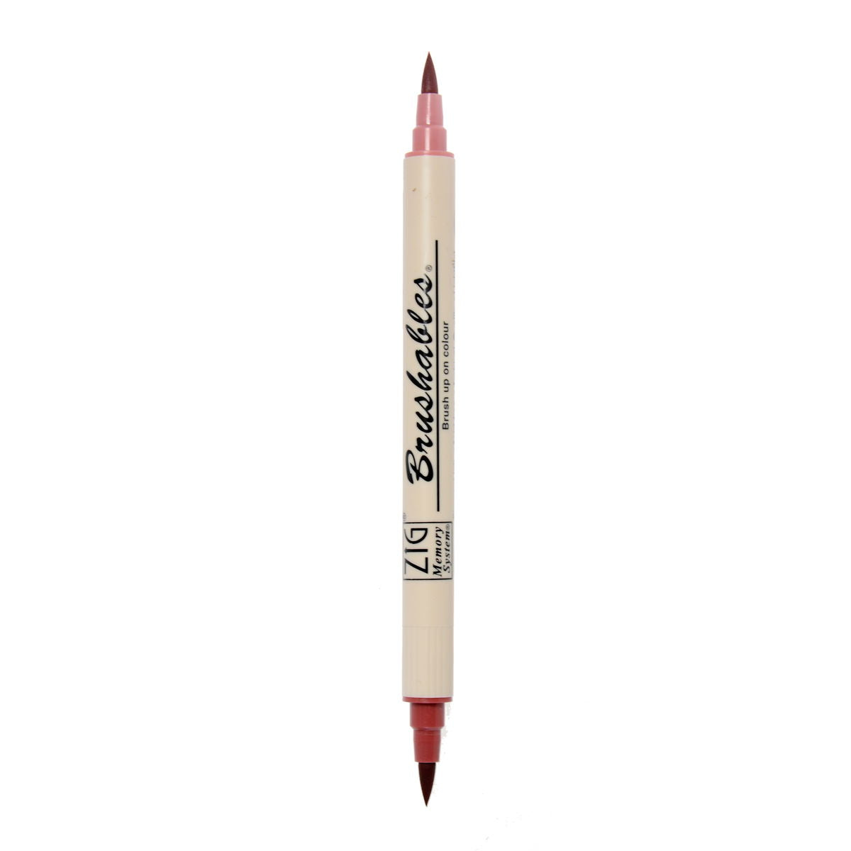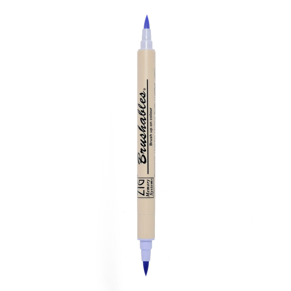Zig Memory System Brushables Markers have a brush tip on both end. One end has the labeled color and the other end has a slightly tinted version of that same color. Great for shading and adding dimension to coloring in stamping or any papercraft projects. The ink is water-based pigment, photo-safe, acid free, lightfase and odorless. Applications will become waterproof when dry.