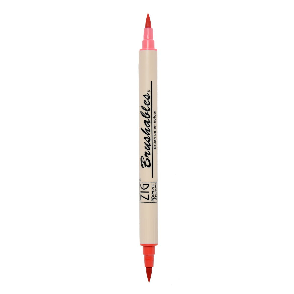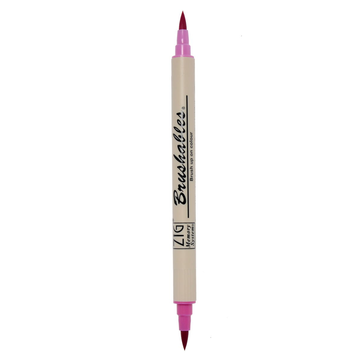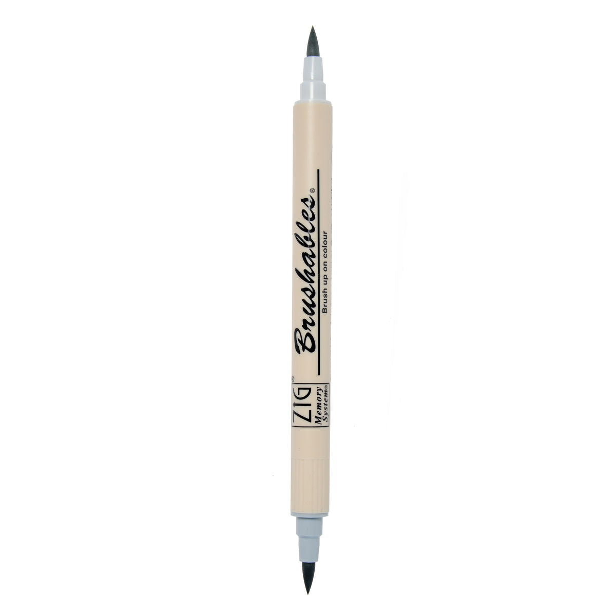Zig Memory System Brushables Markers have a brush tip on both end. One end has the labeled color and the other end has a slightly tinted version of that same color. Great for shading and adding dimension to coloring in stamping or any papercraft projects. The ink is water-based pigment, photo-safe, acid free, lightfase and odorless. Applications will become waterproof when dry.